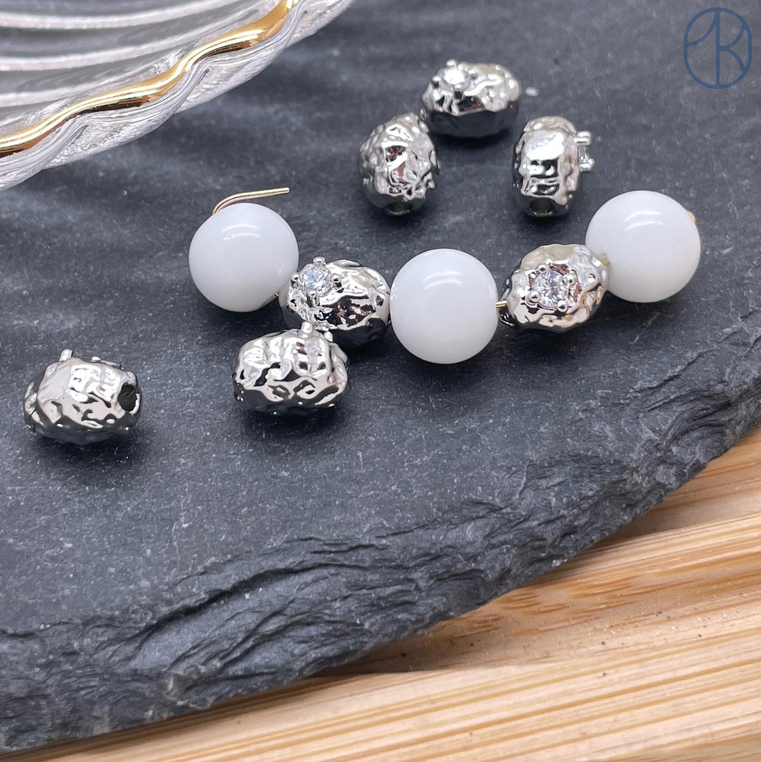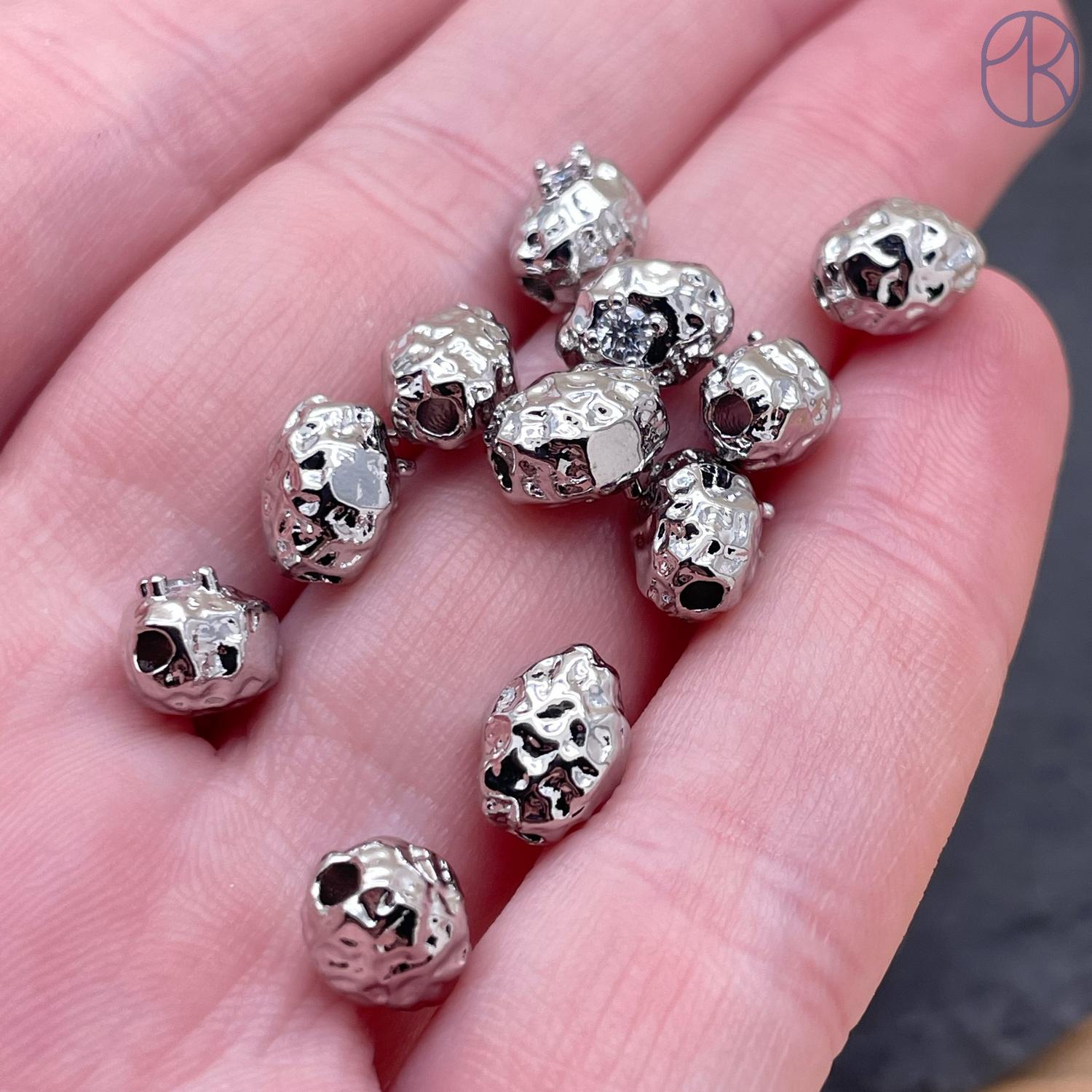 Бусина овал мятая циркон фриформ, Цвет серебро, 6х8 мм
