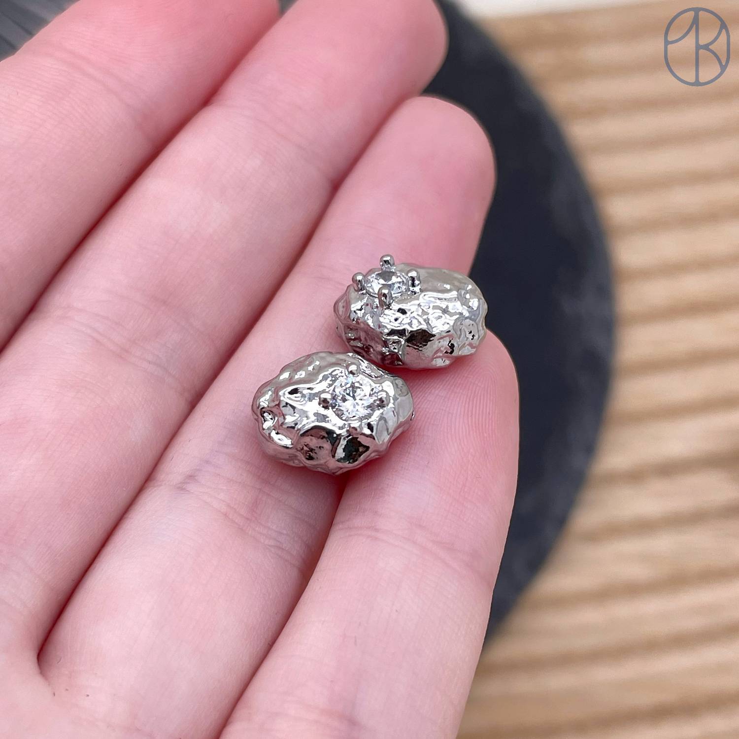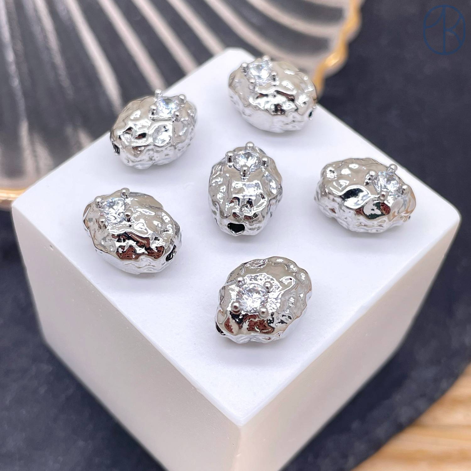 Бусина овал мятая циркон фриформ цвет серебро 9х12 мм