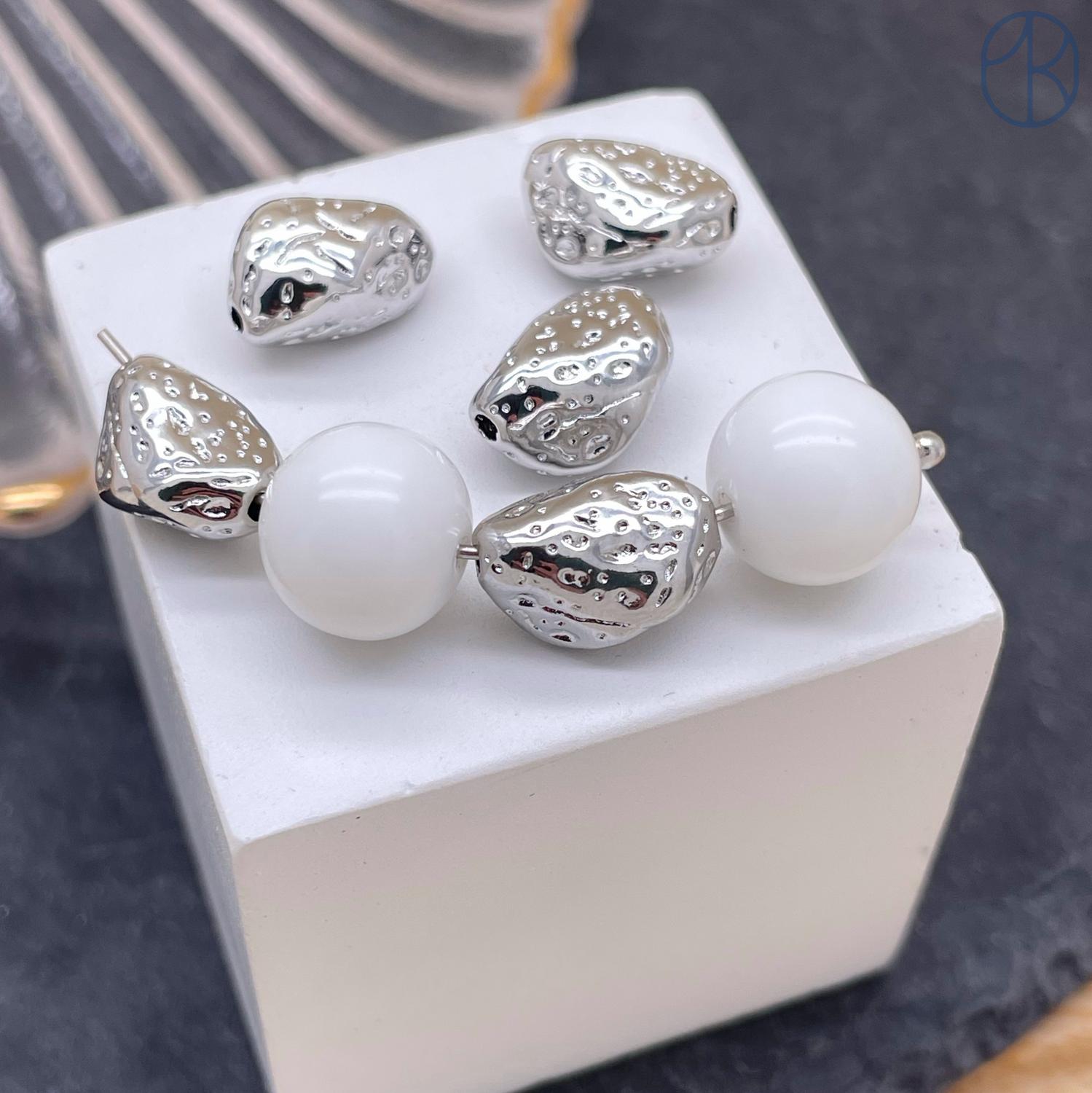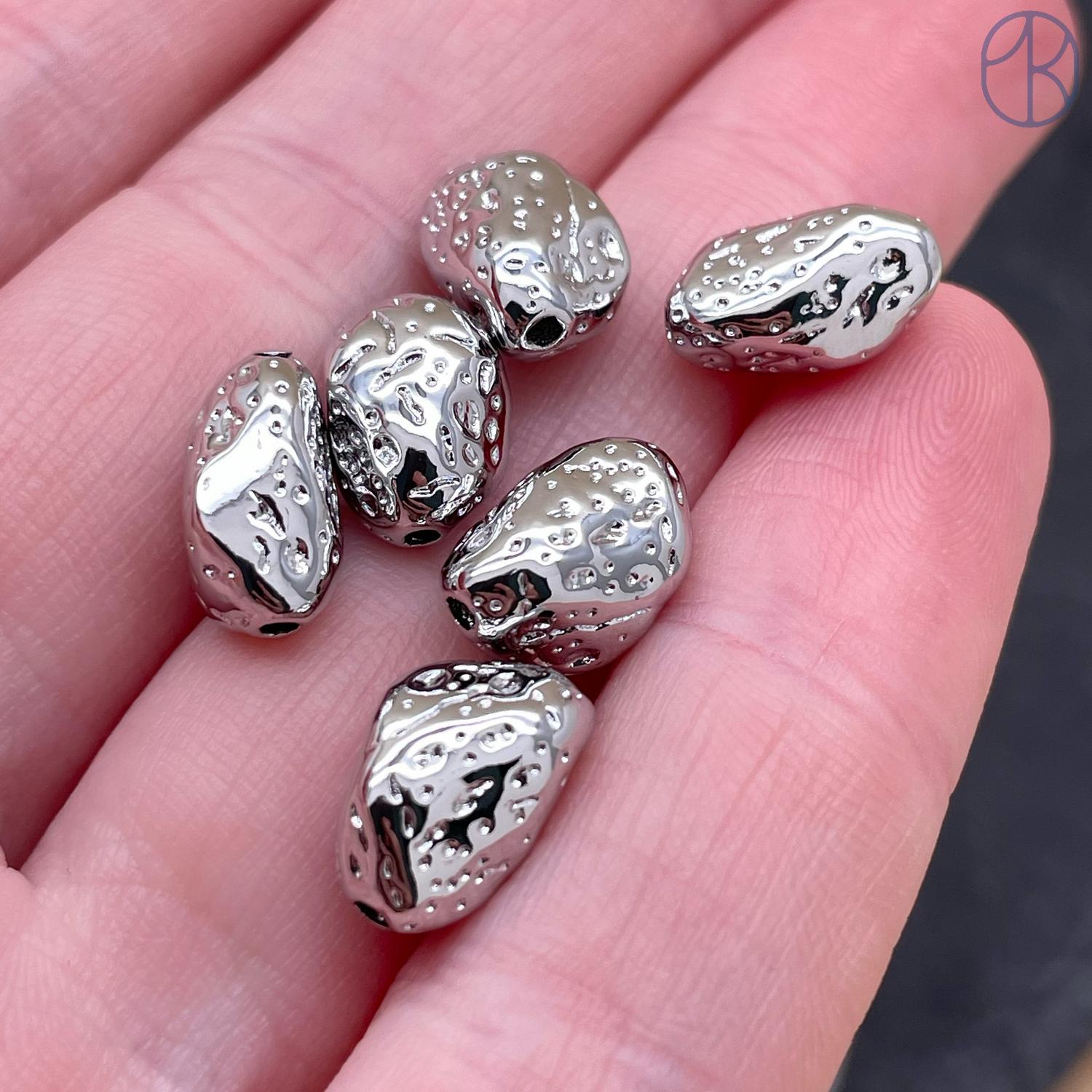 Бусина овал мятая цирконы фриформ, цвет серебро 8х12 мм
