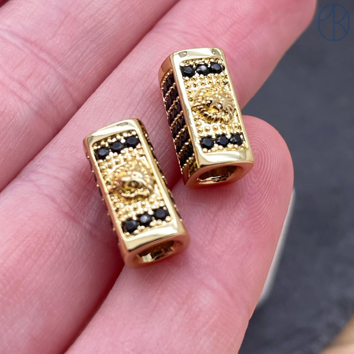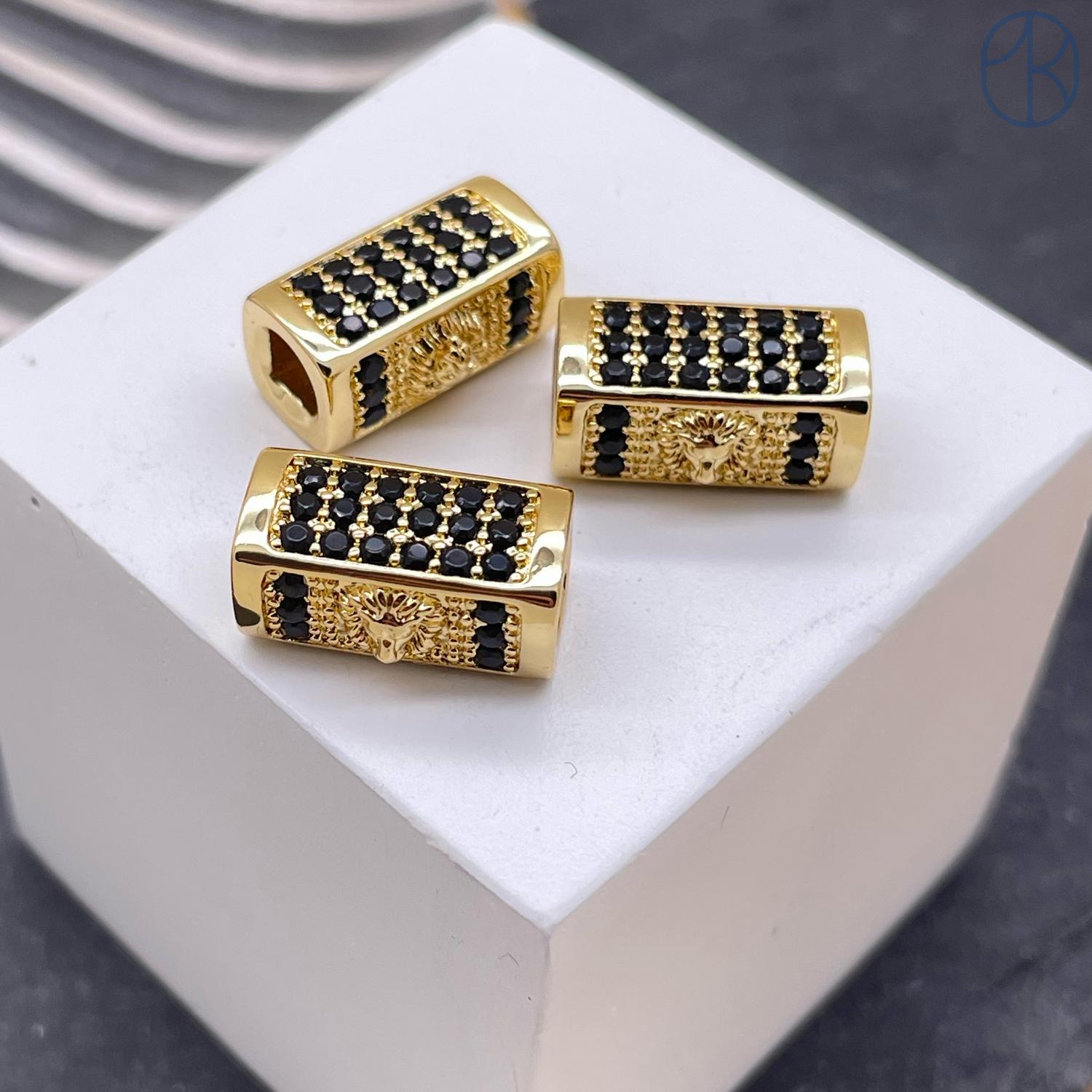 Бусина прямоугольник Лев цирконы, цвет золото 13х7 мм