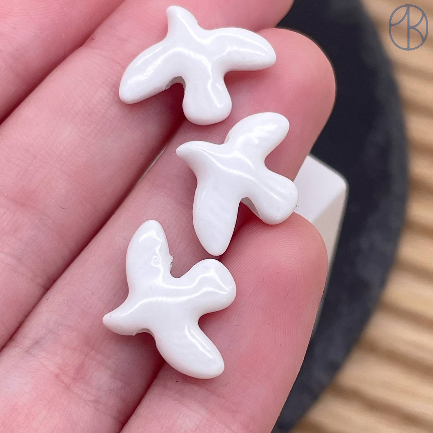 Бусина птица, цвет белый 17 мм