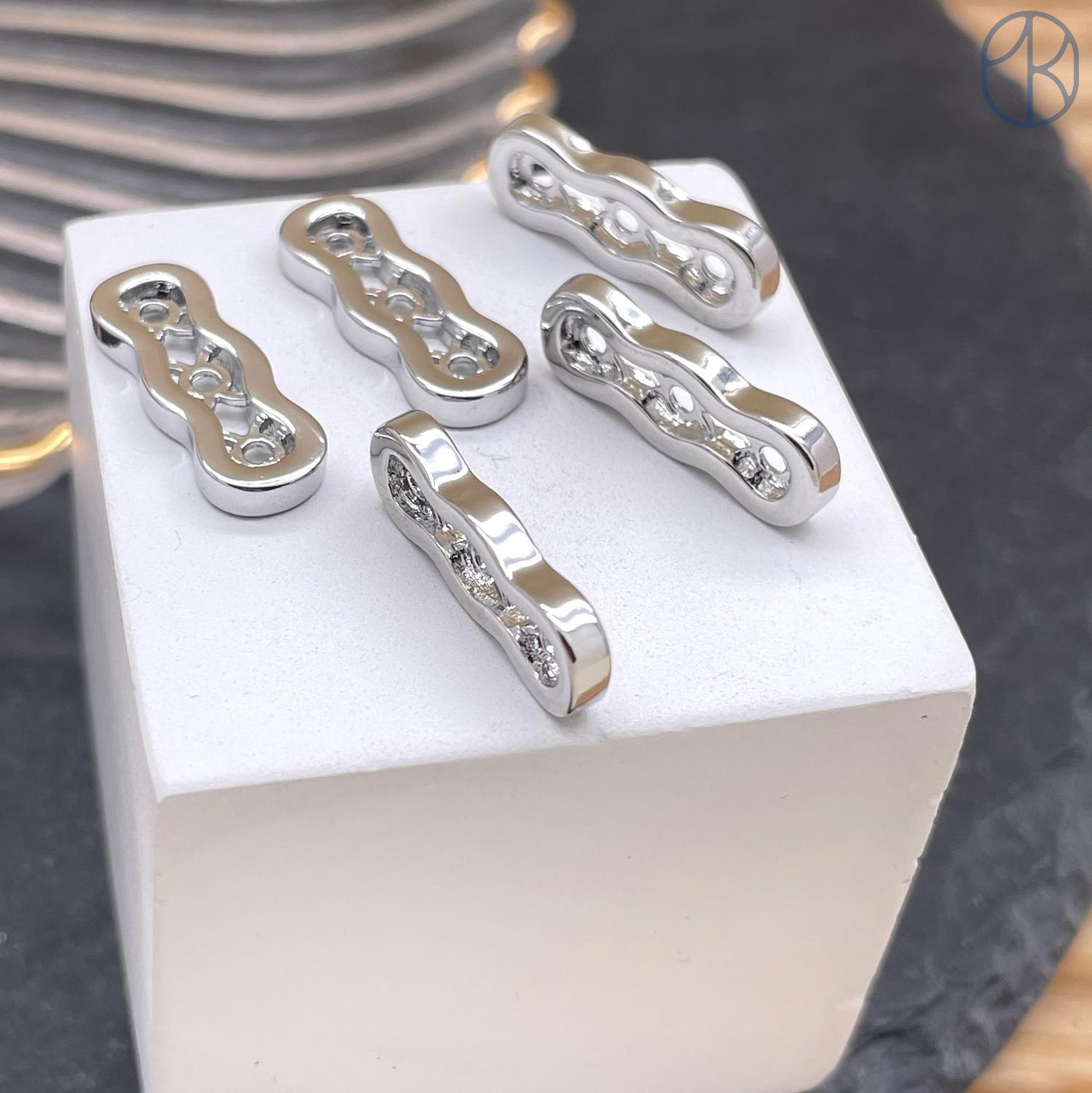Бусина-разделитель на 3 ряда, Цвет серебро, 7х19 мм
