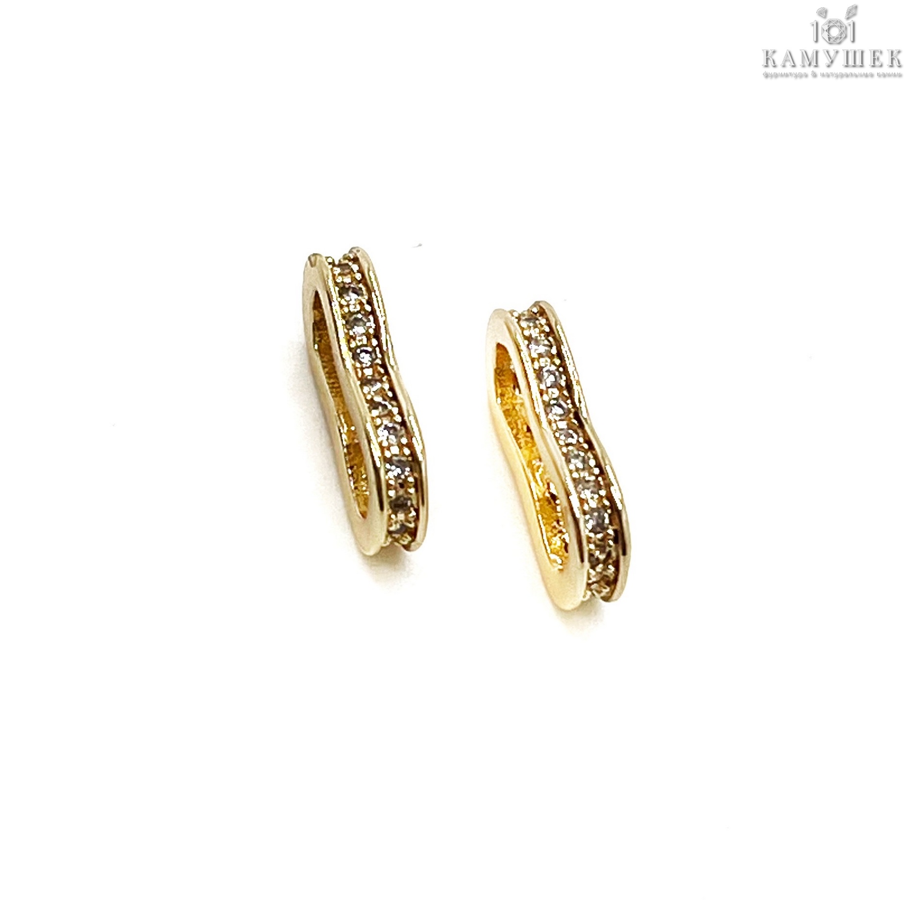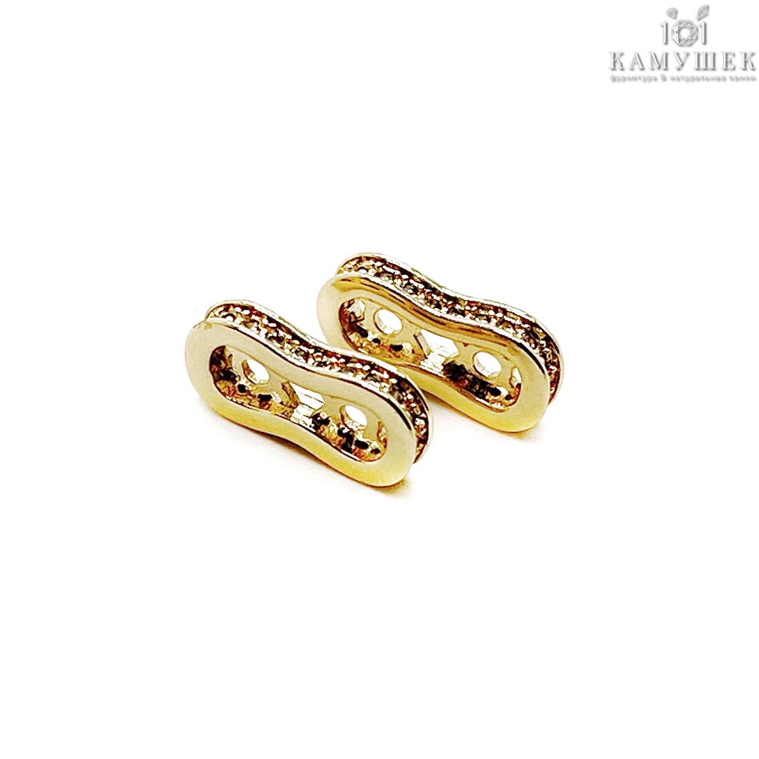 Бусина на 2 ряда цирконы, цвет золото 12х6 мм