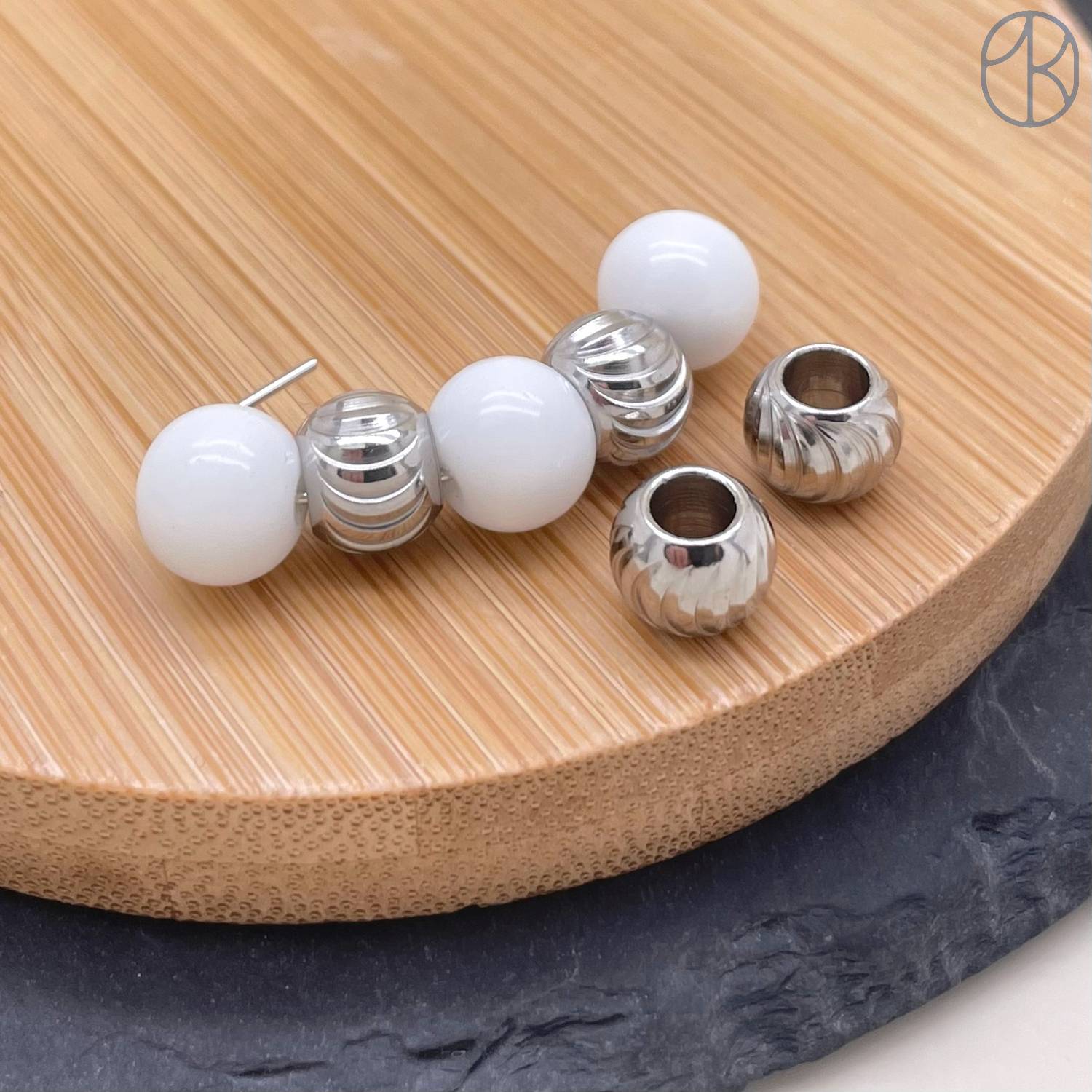 Бусина резная сталь 8 мм, цвет серебро