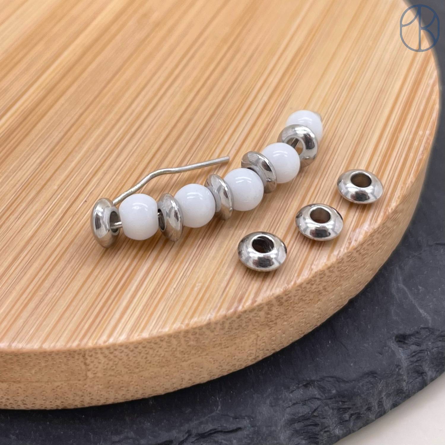 Бусина рондель сталь уп. 6 шт. 6 мм, цвет серебро