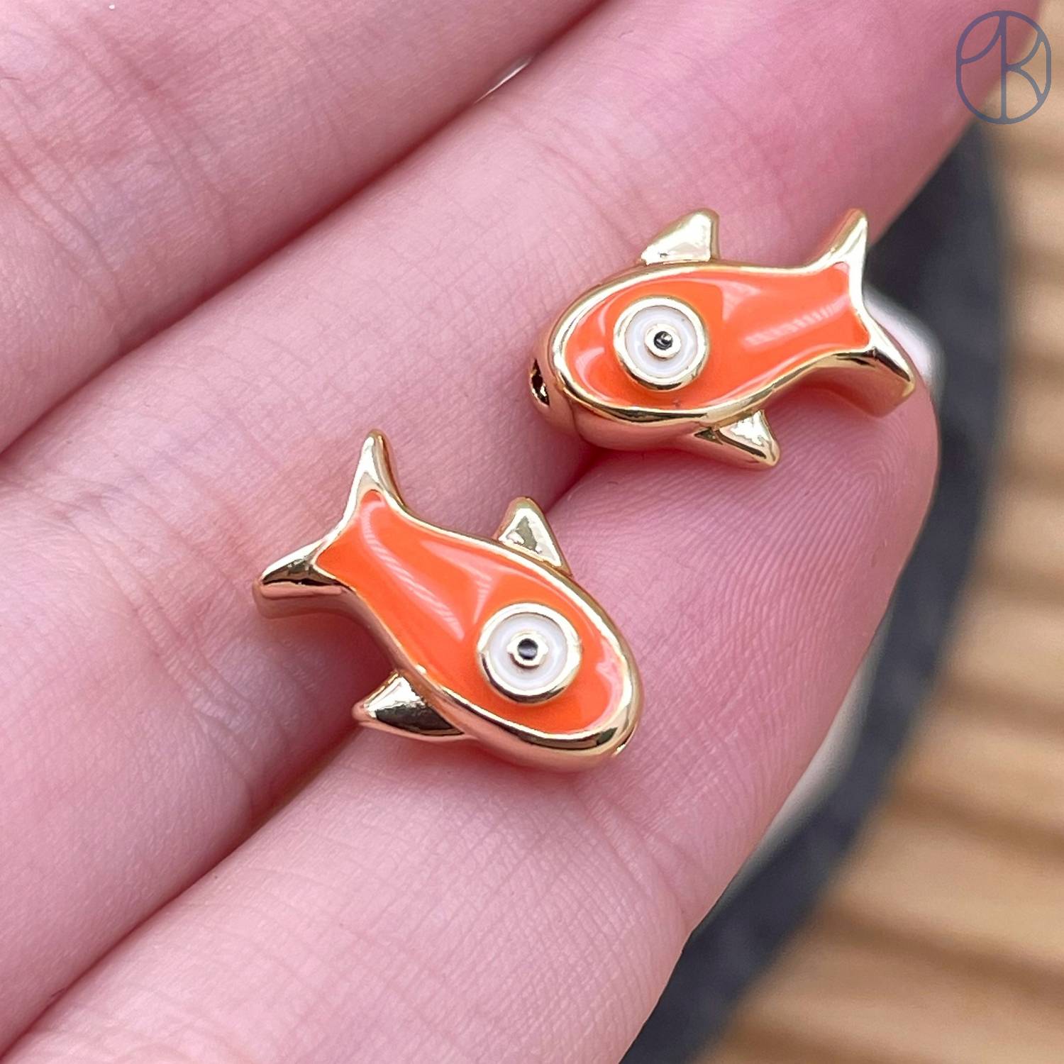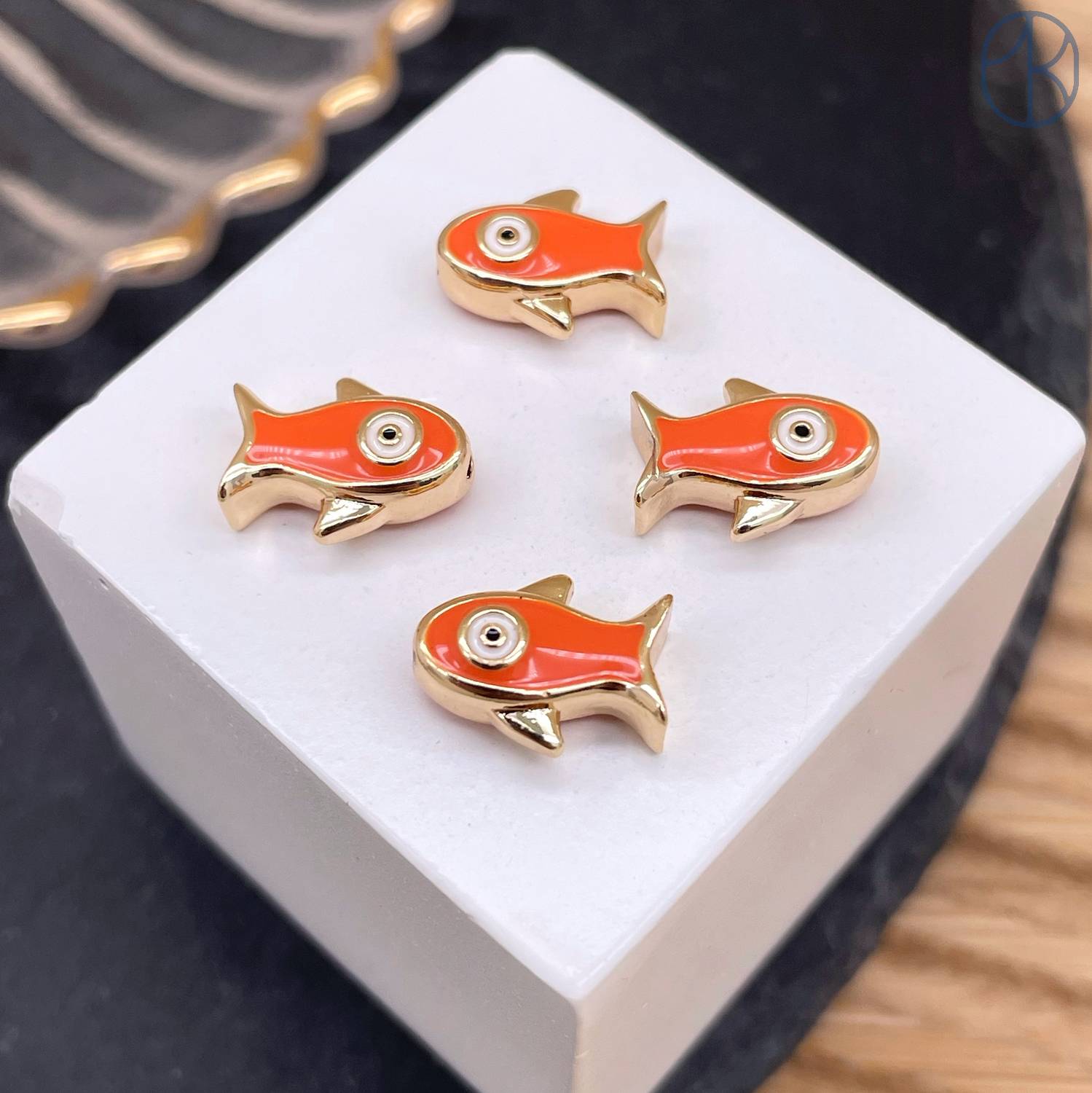 Бусина рыба оранжевая эмаль, цвет золото 12х8 мм