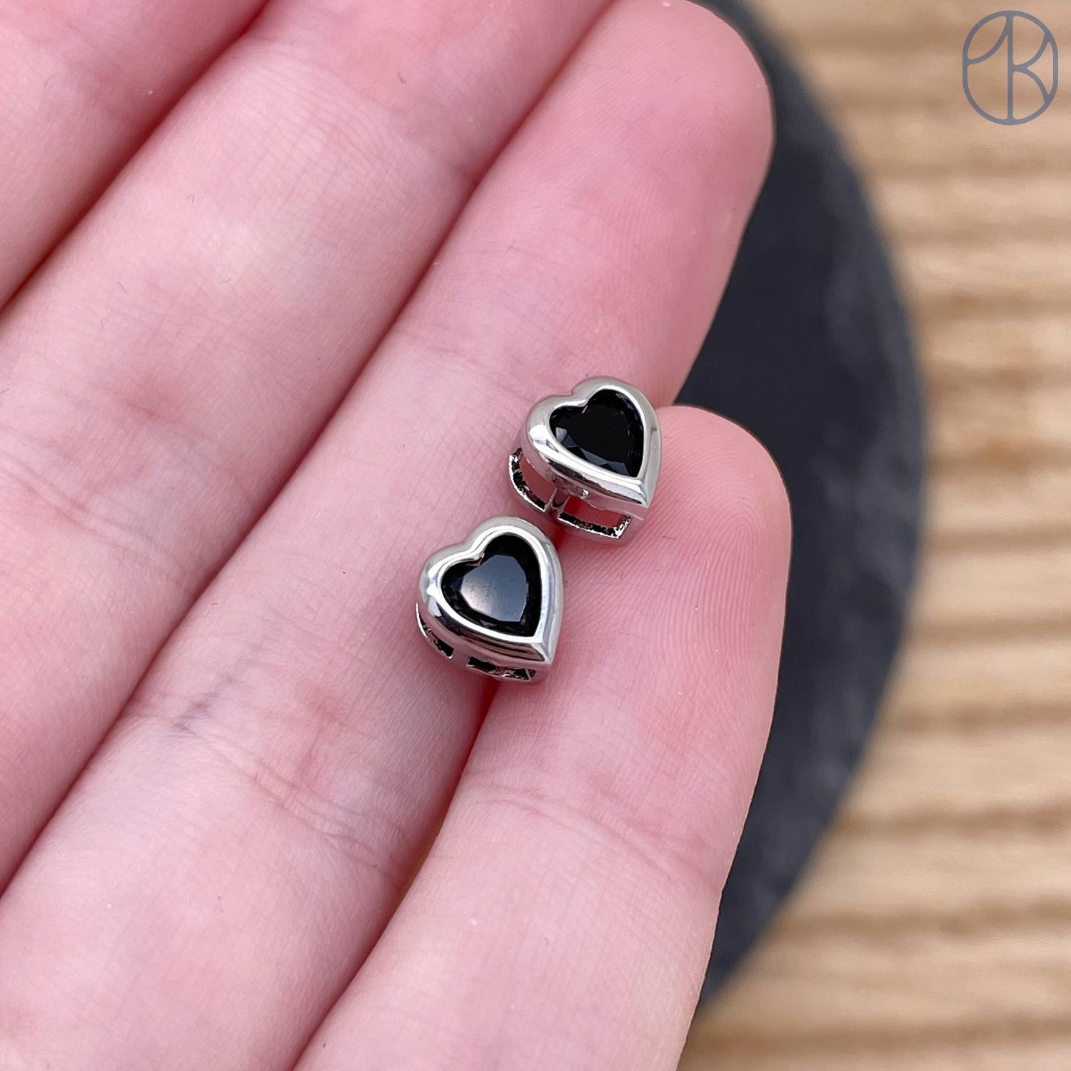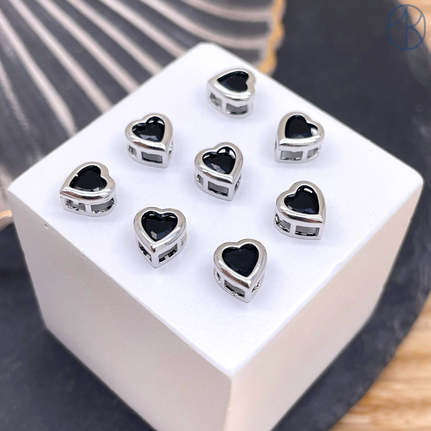 Бусина сердце черный циркон
