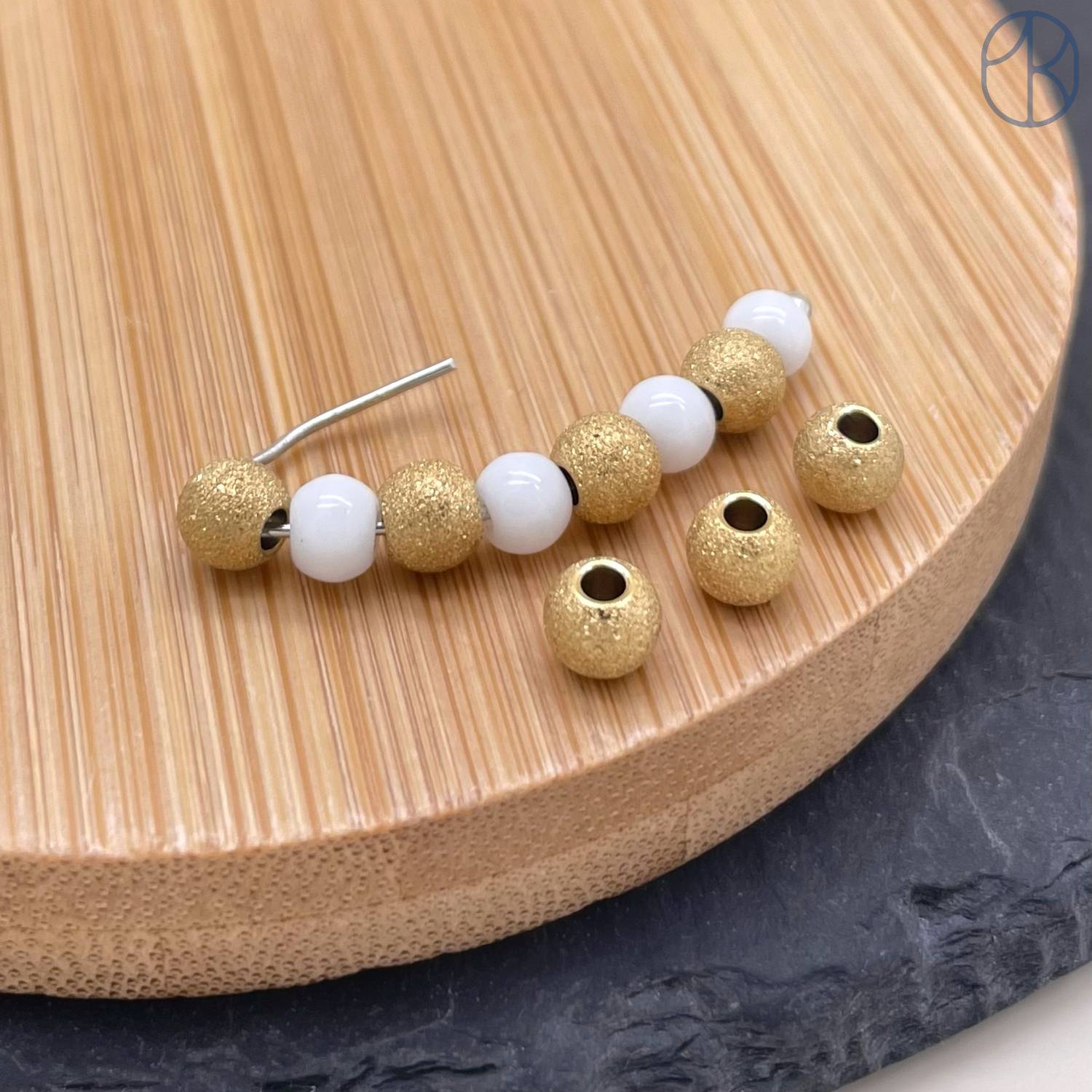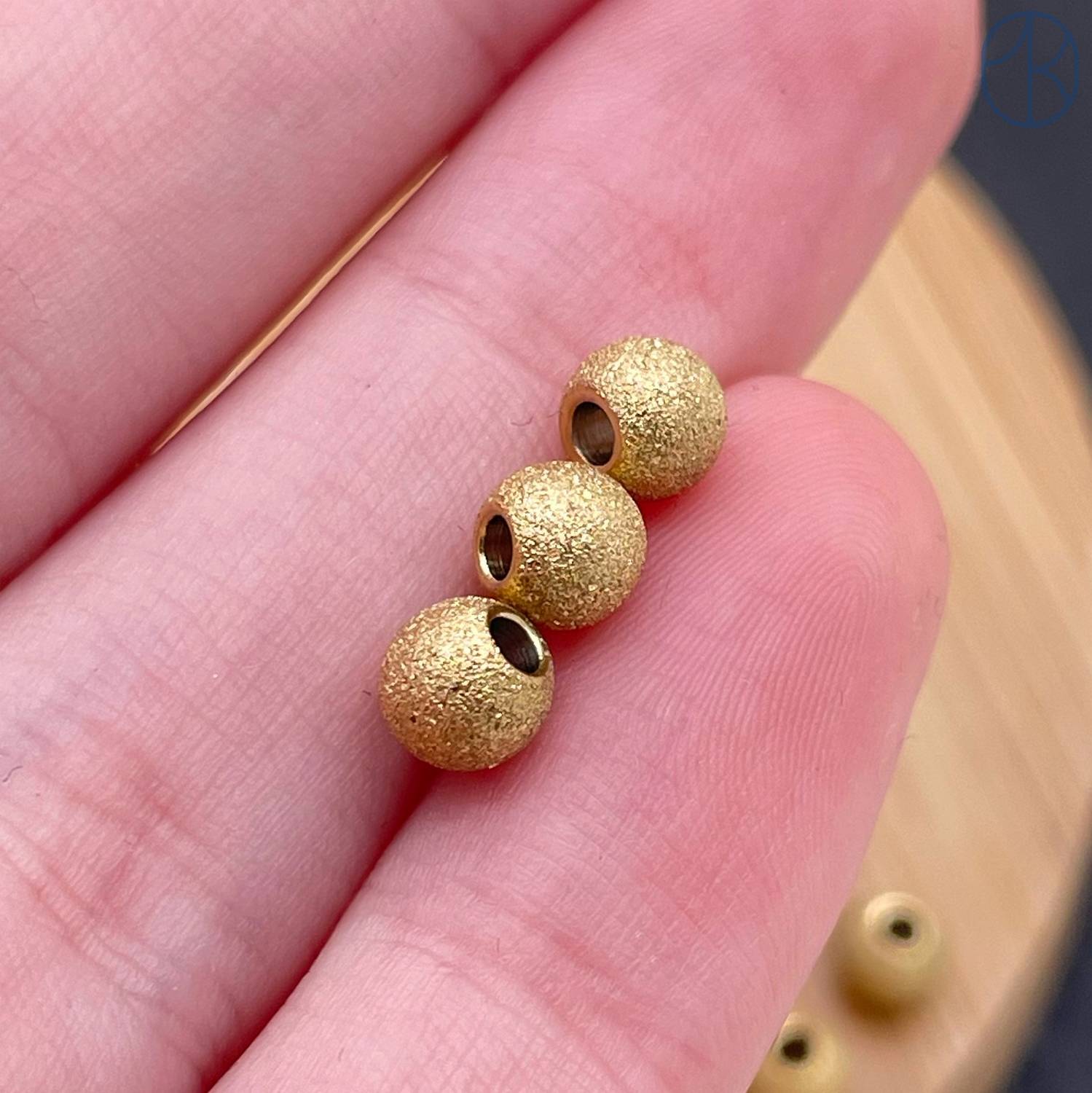 Бусина шар фактурный сталь 5 мм, цвет золото 18К