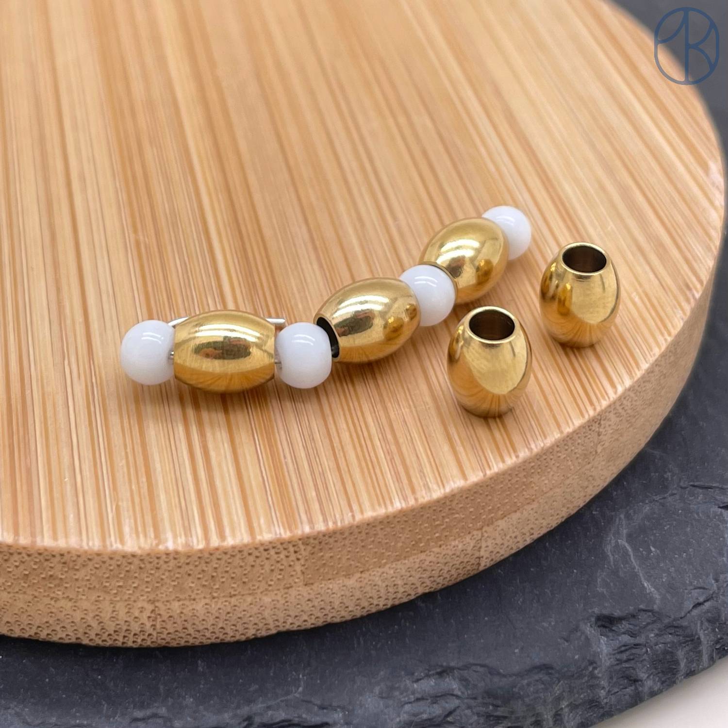 Бусина сталь 7х3 мм, цвет золото 18К