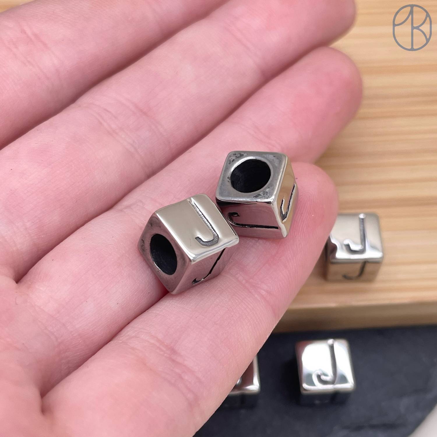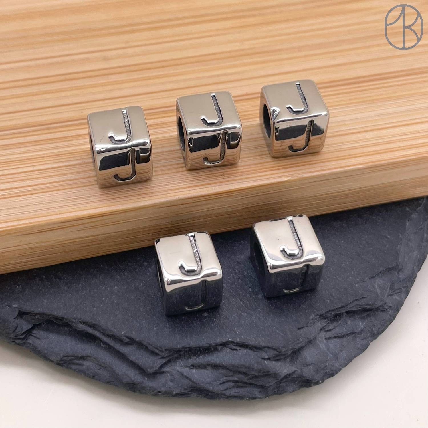Бусина сталь куб буква J