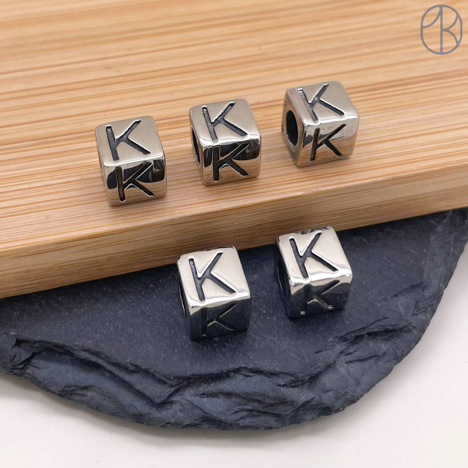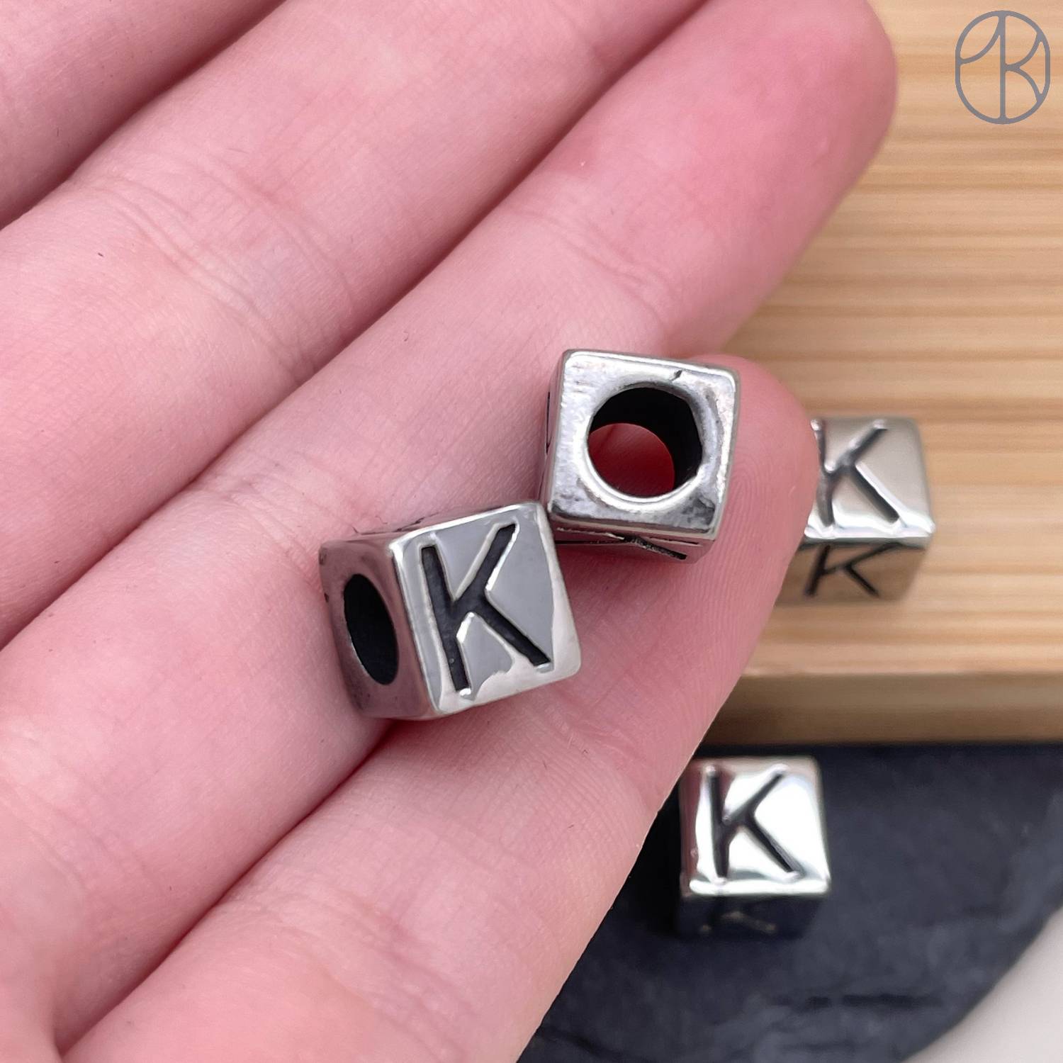 Бусина сталь куб буква K