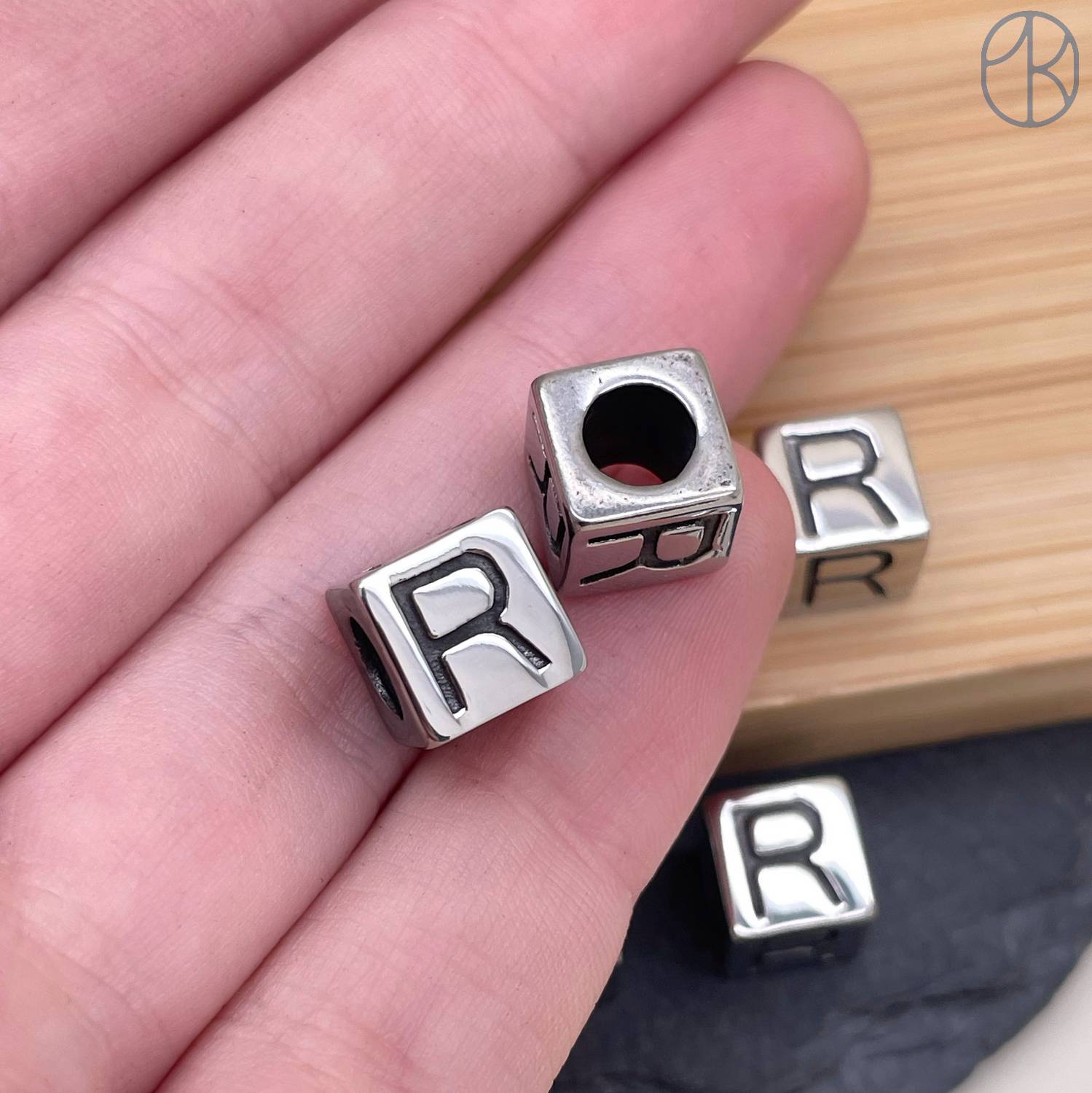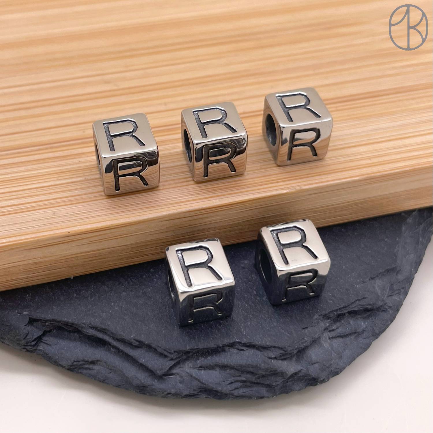Бусина сталь куб буква R