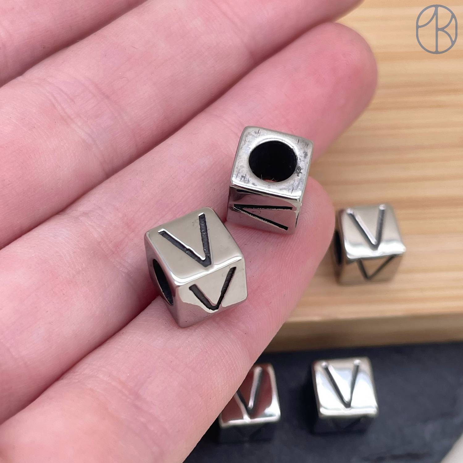 Бусина сталь куб буква V