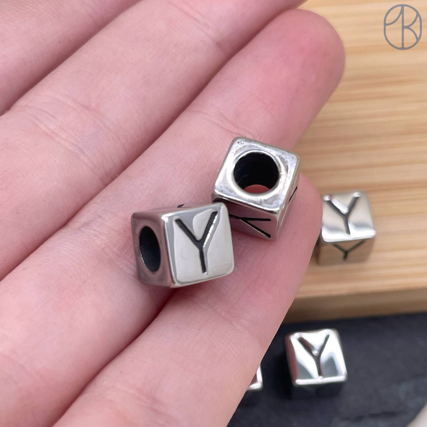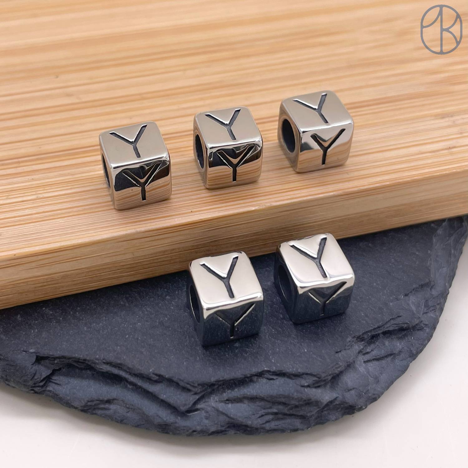 Бусина сталь куб буква Y, цвет серебро 8 мм