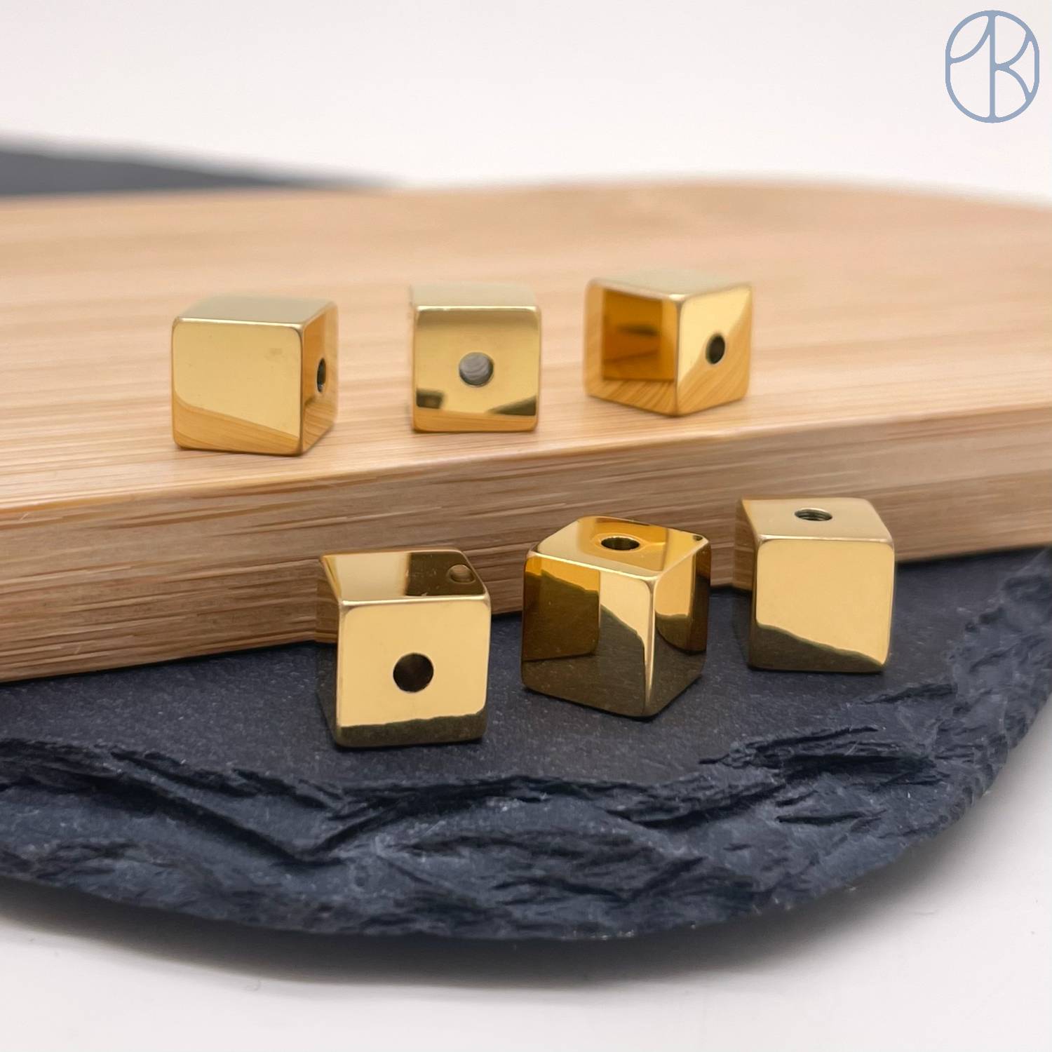 Бусина сталь куб, цвет золото 8 мм
