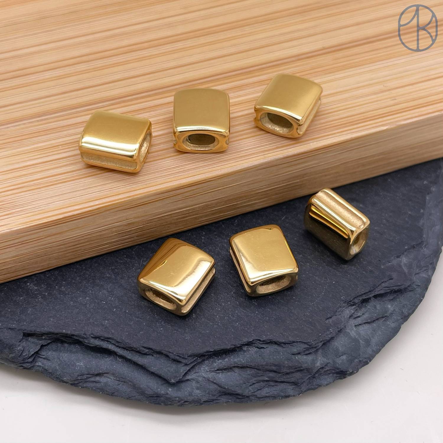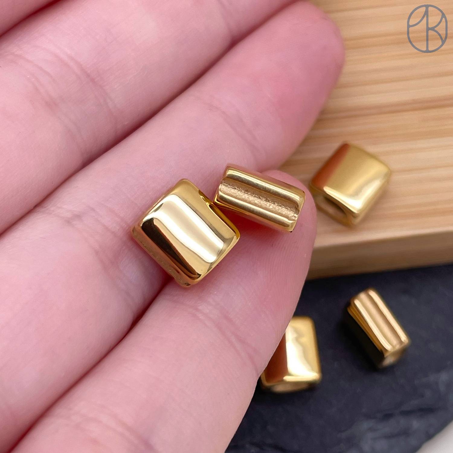 Бусина сталь прямоугольник, цвет золото 8 мм