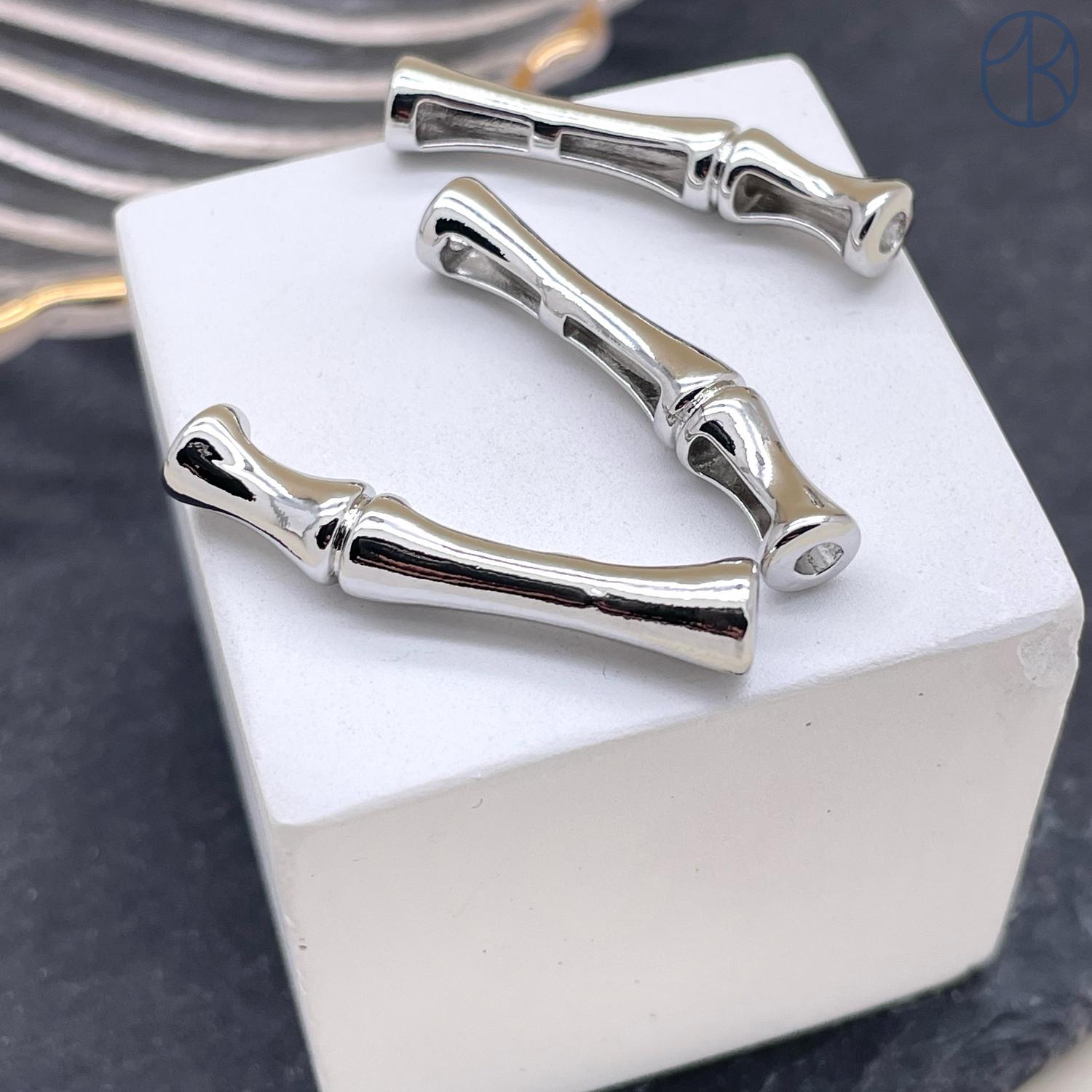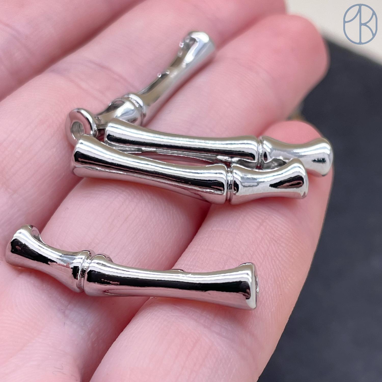 Бусина трубочка бамбук, цвет серебро 30х5 мм