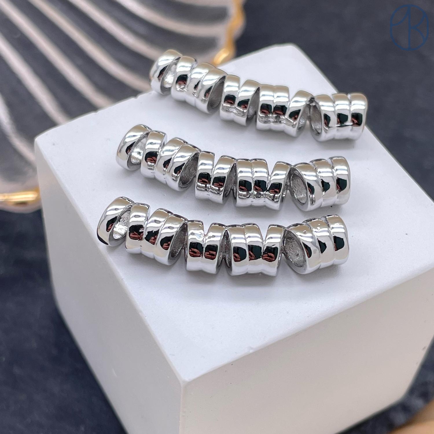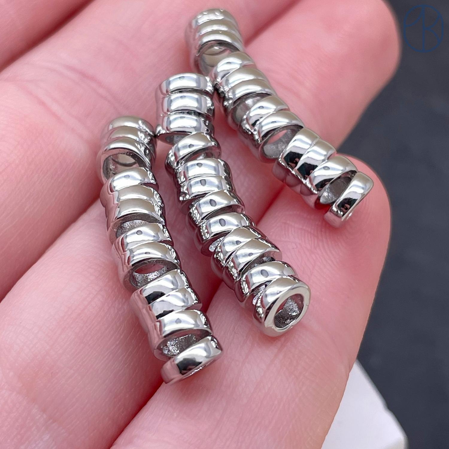 Бусина трубочка фриформ, цвет серебро 28х8 мм