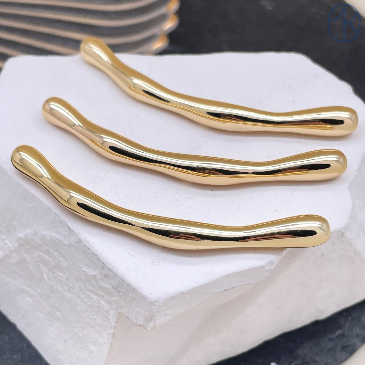 Бусина трубочка фриформ, цвет золото 62х5 мм