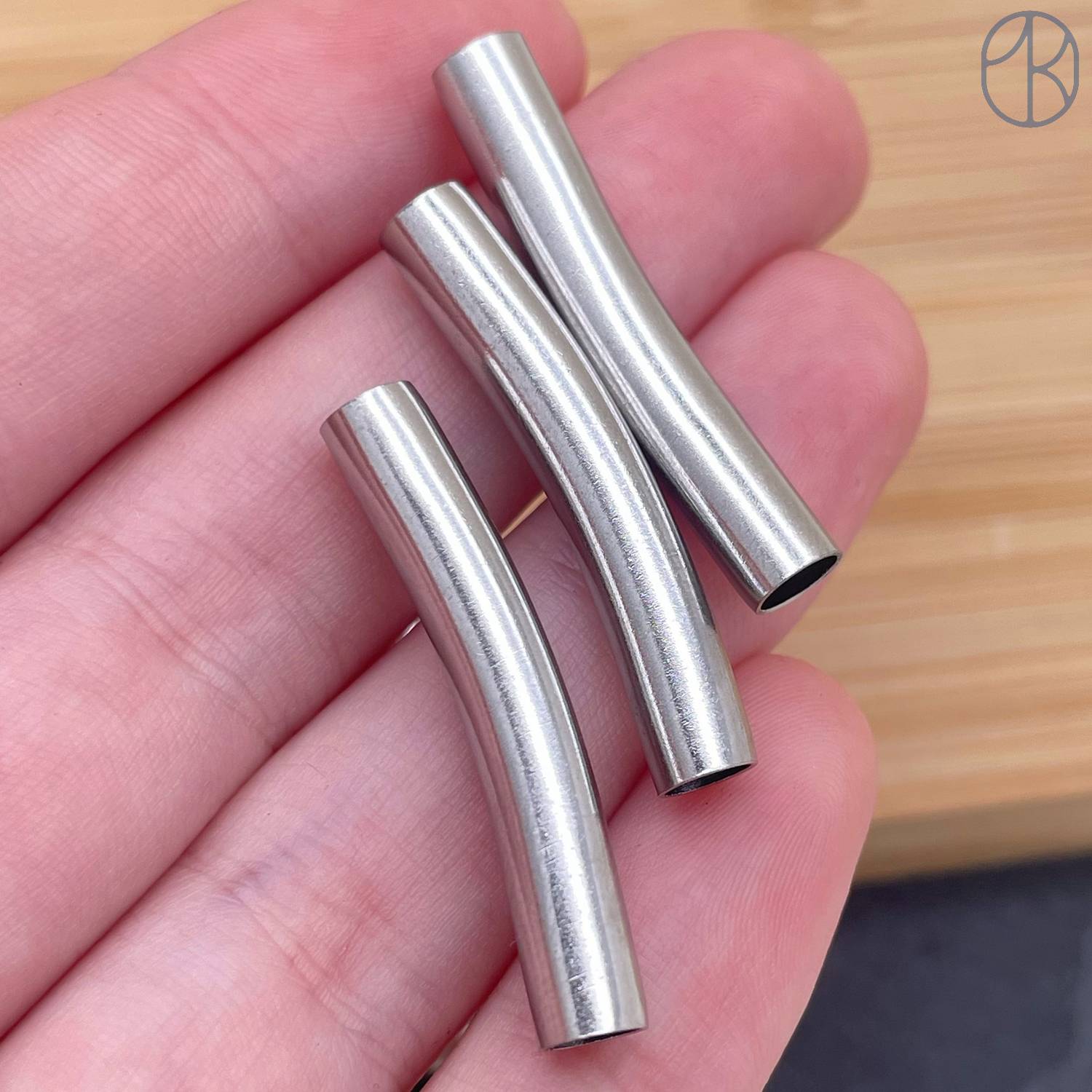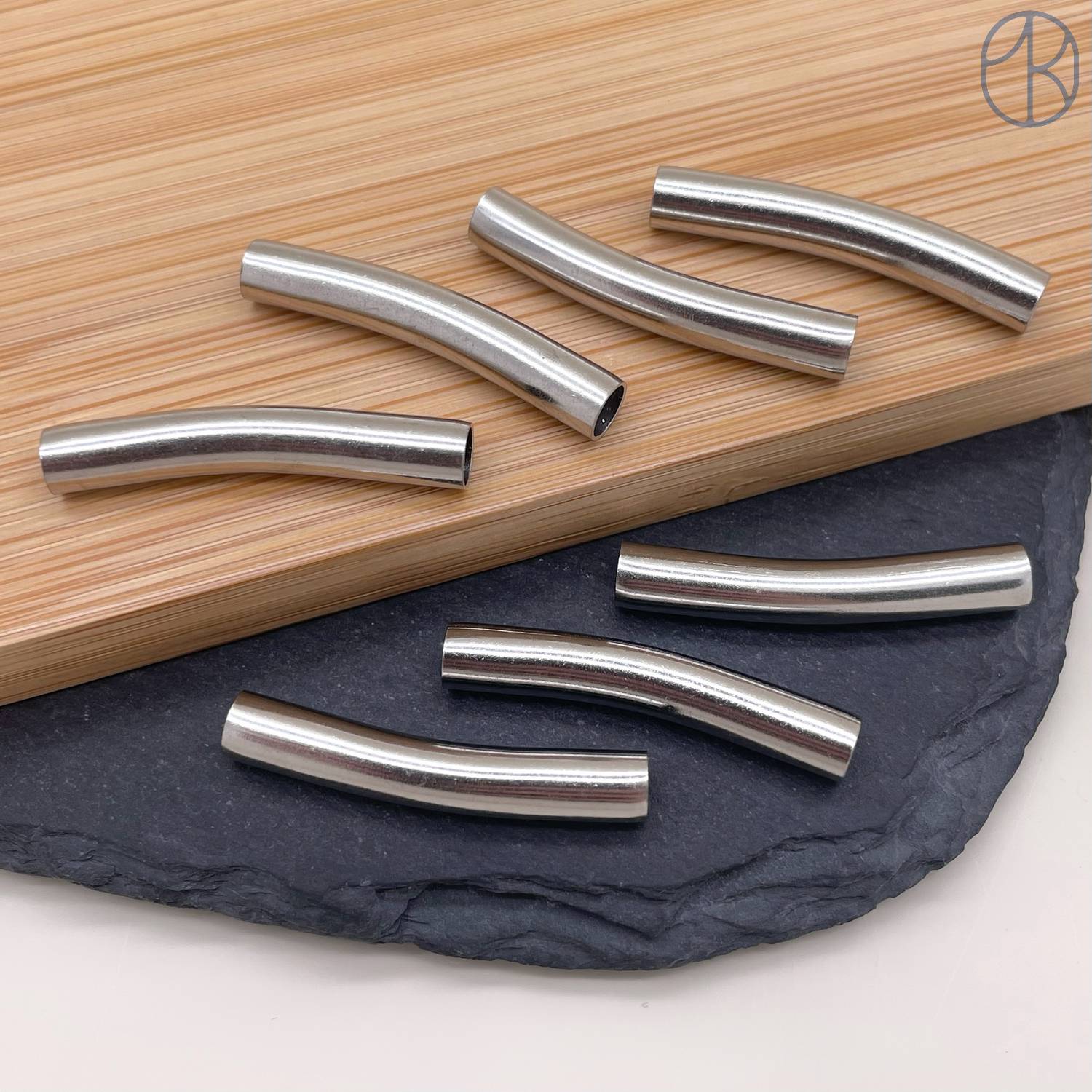 Бусина трубочка сталь 30х5 мм, цвет серебро