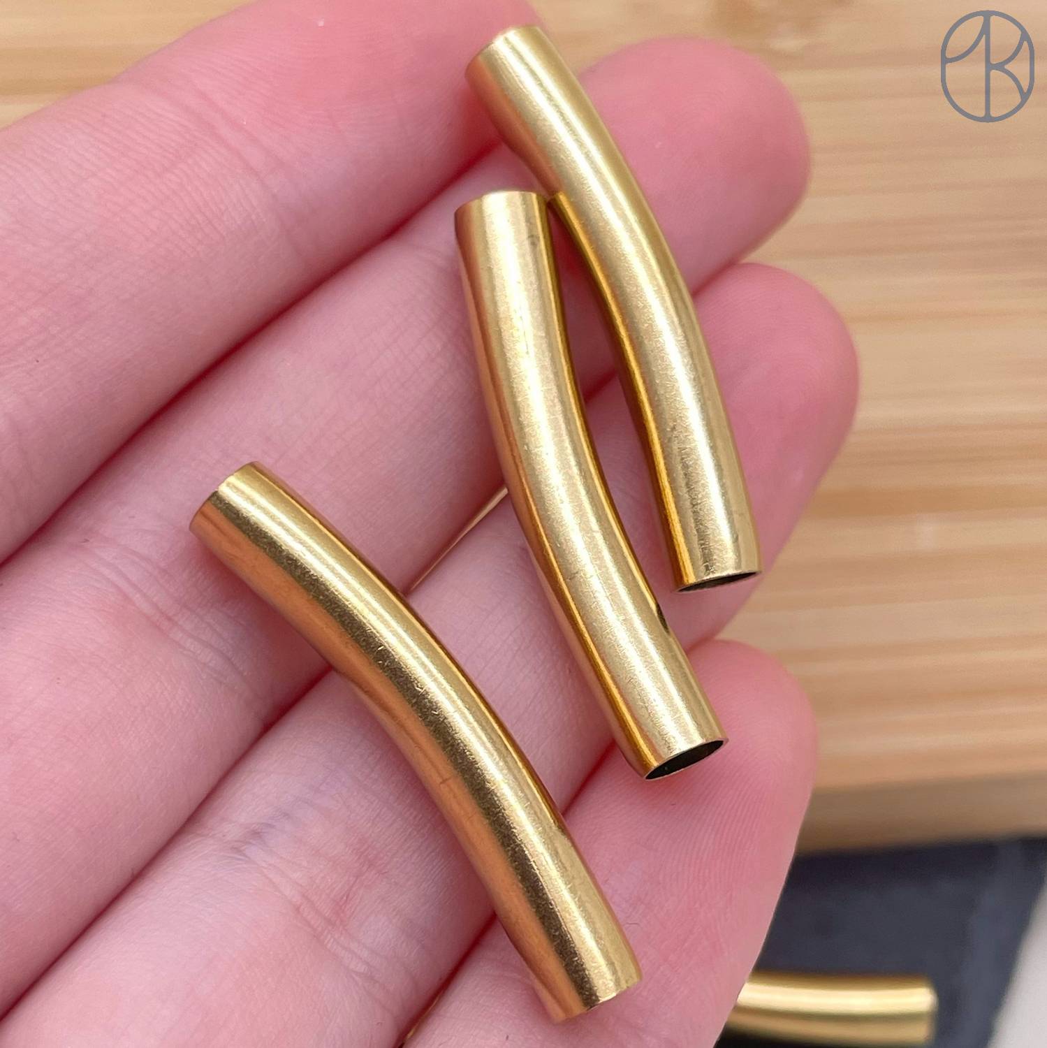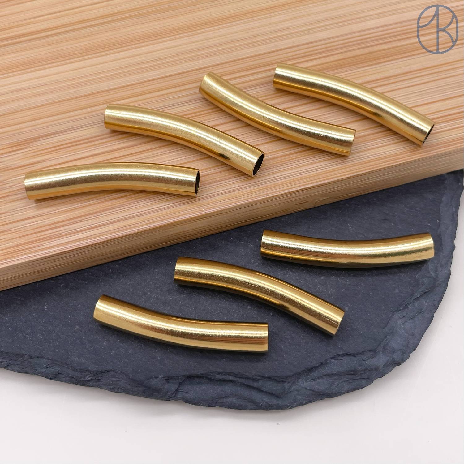 Бусина трубочка сталь 30х5 мм, цвет золото 18К