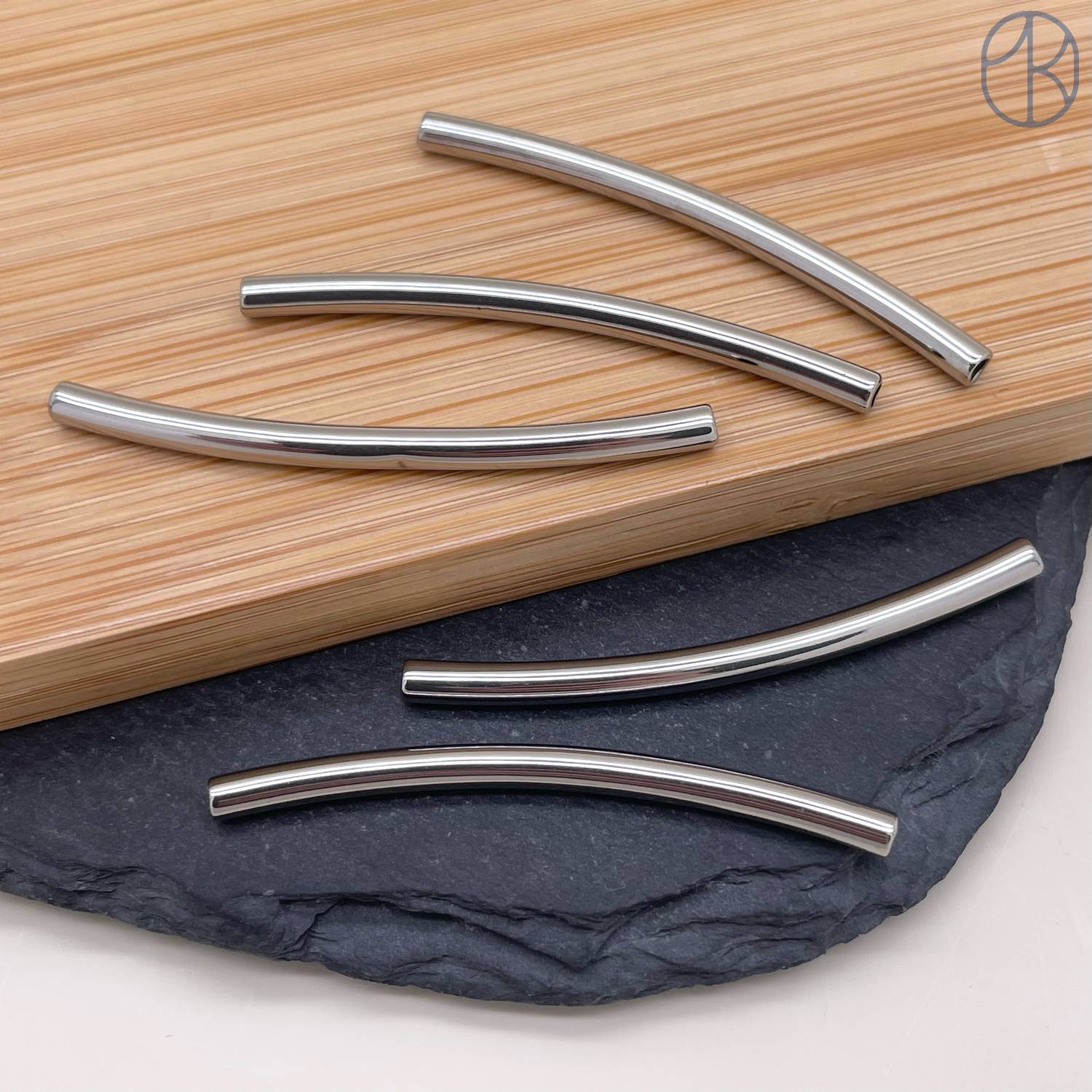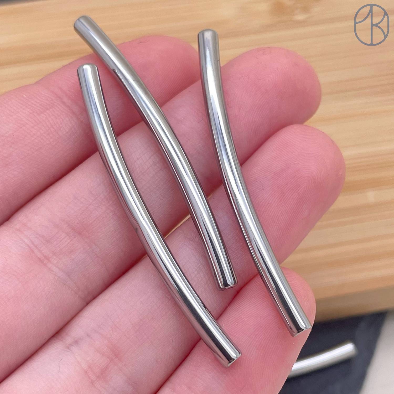 Бусина трубочка сталь 45х3 мм, цвет серебро