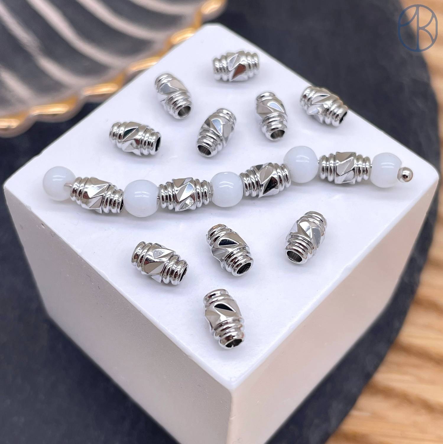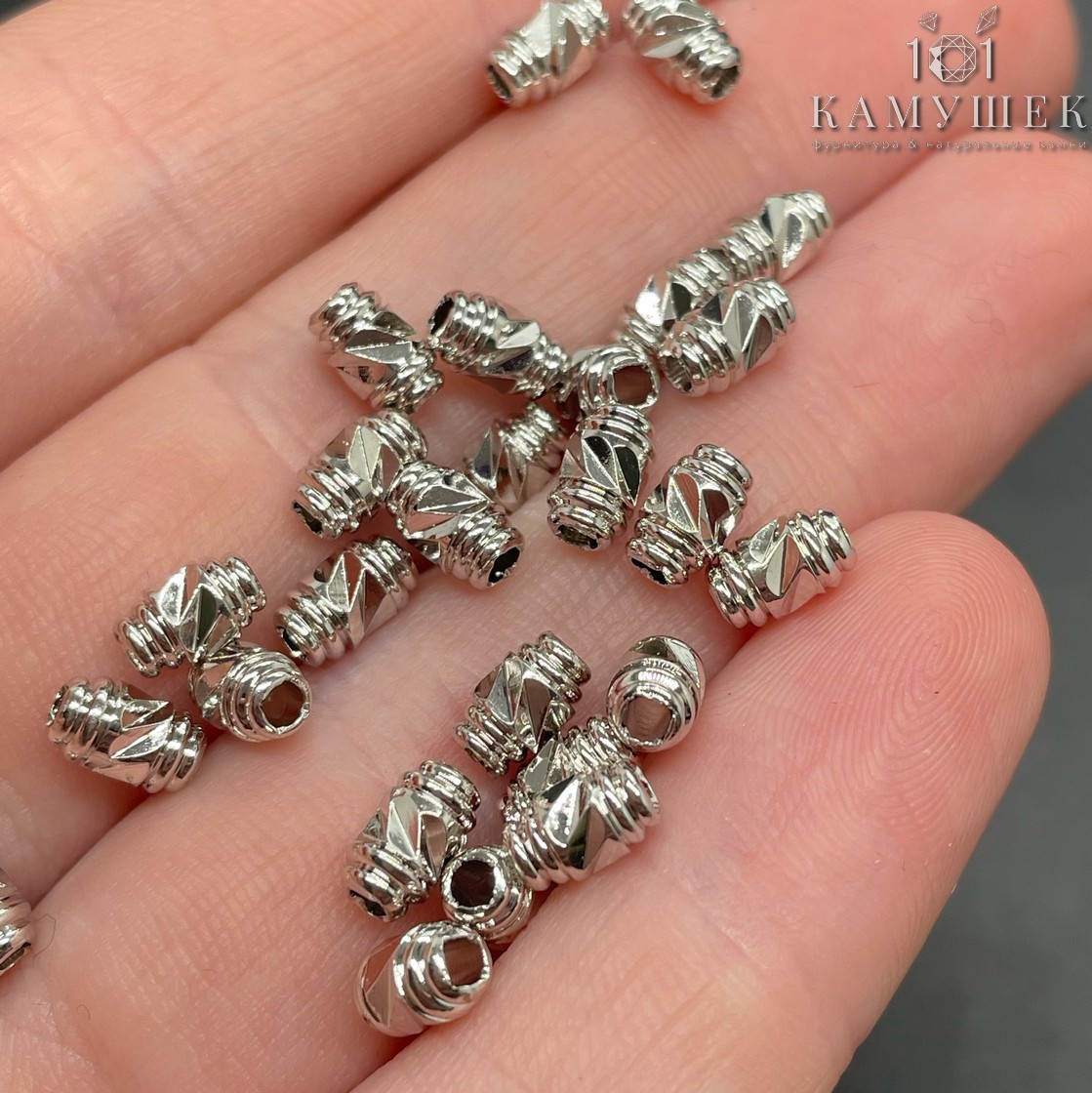 Бусина цилиндр, цвет серебро 6х4