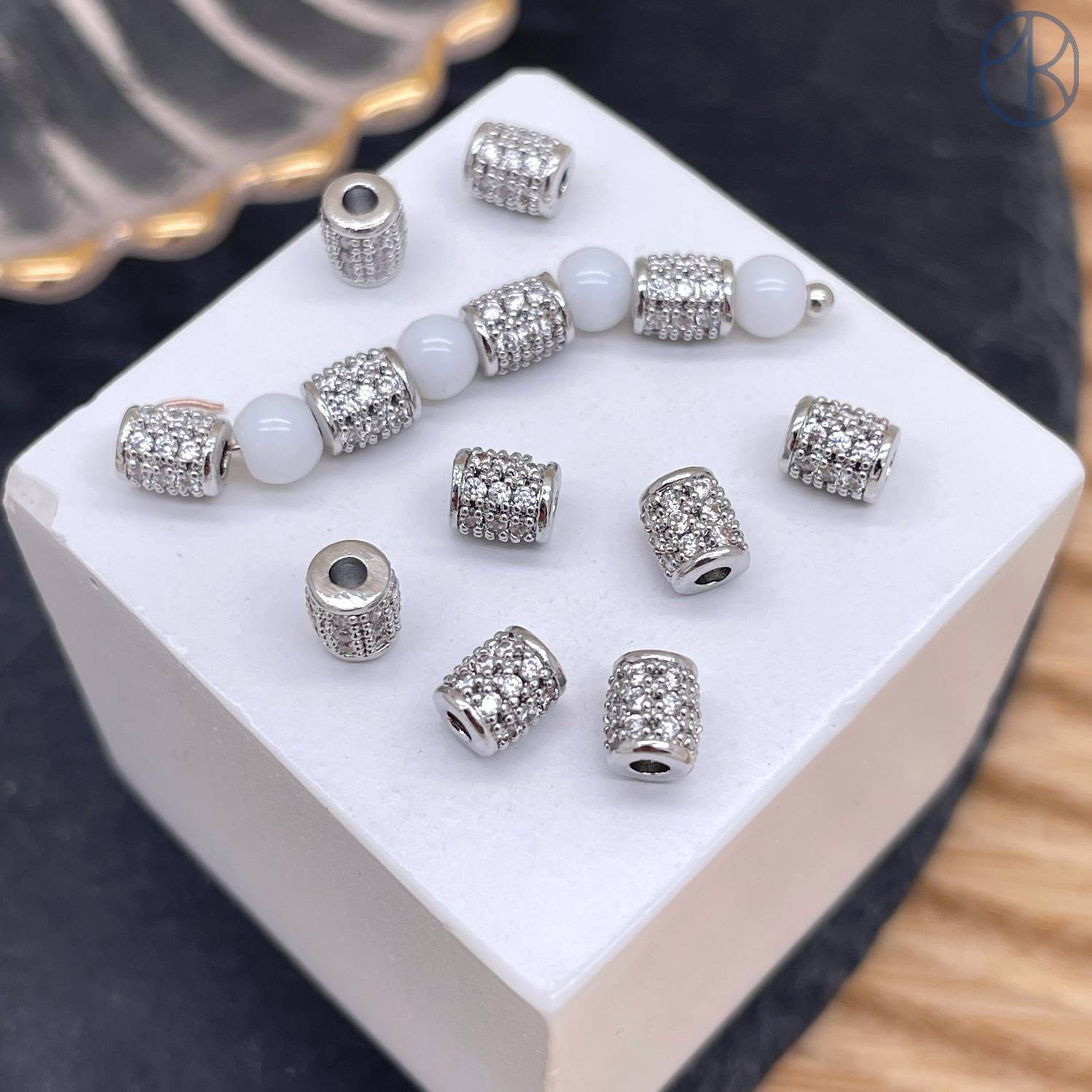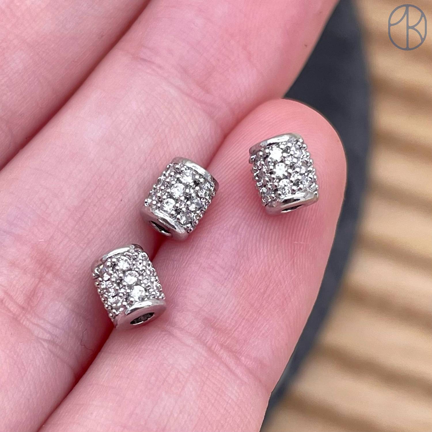 Бусина цилиндр цирконы, цвет серебро 5 мм