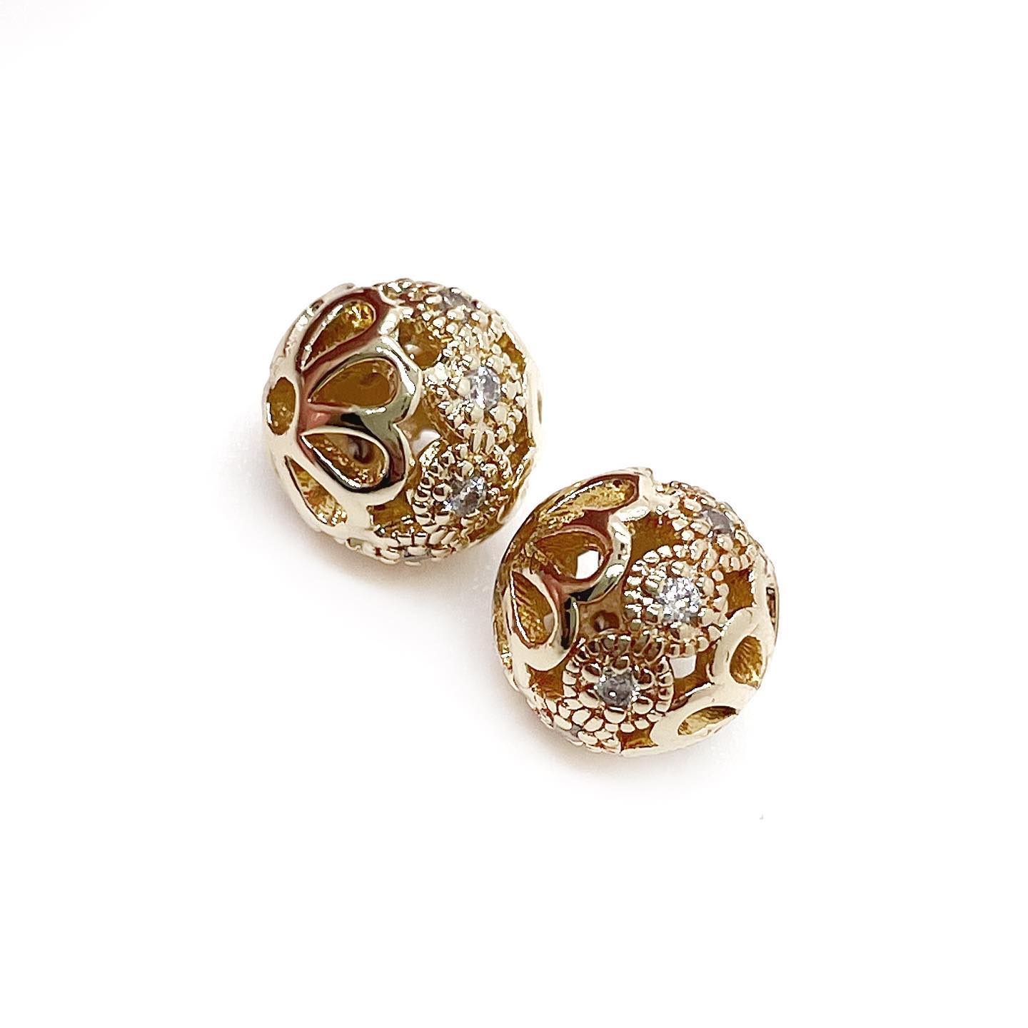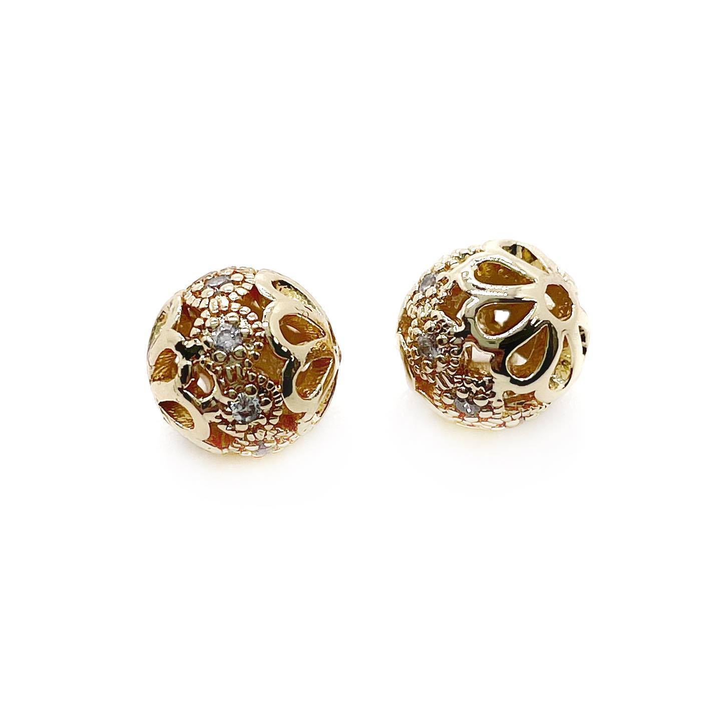 Бусина шар цветок цирконы, цвет золото 8 мм