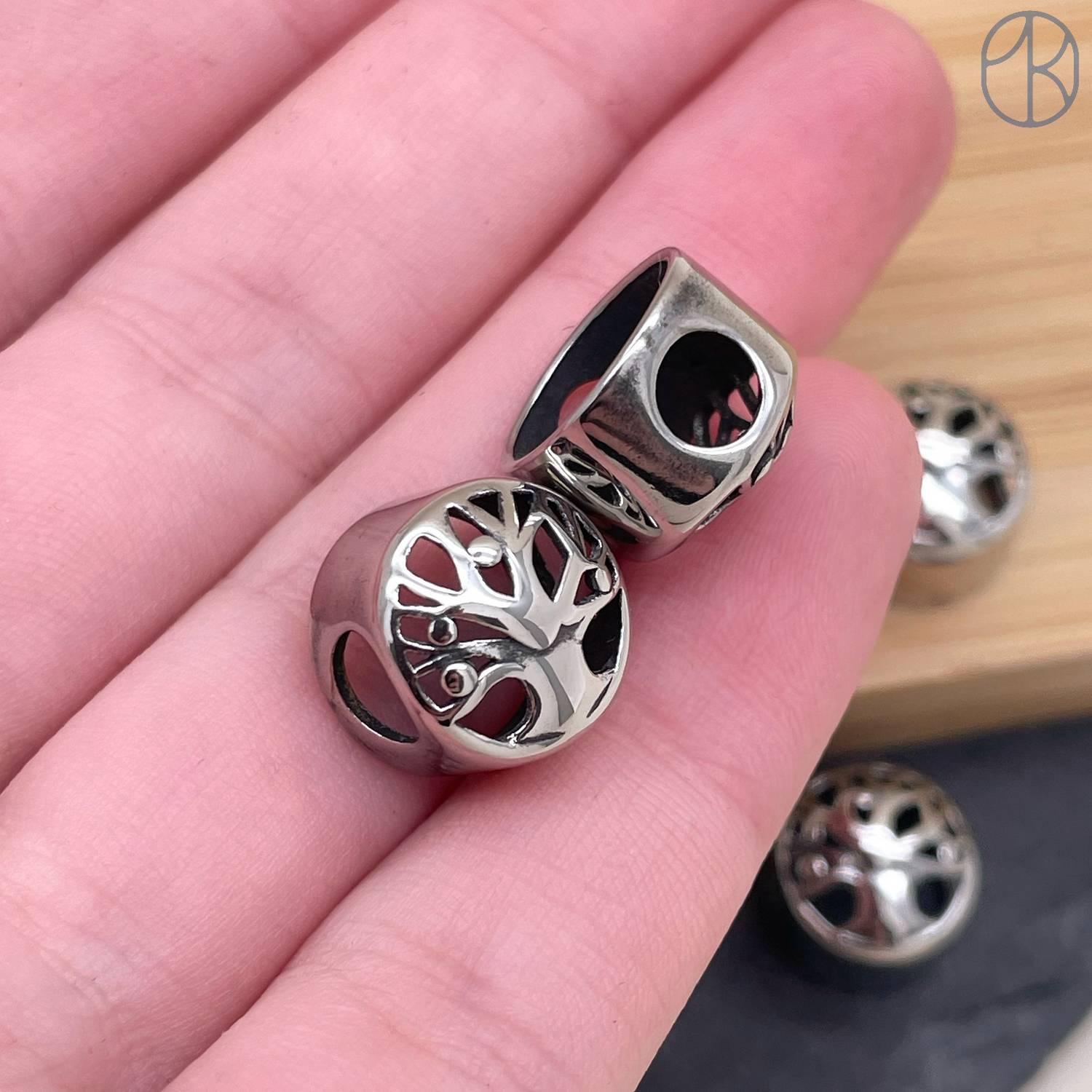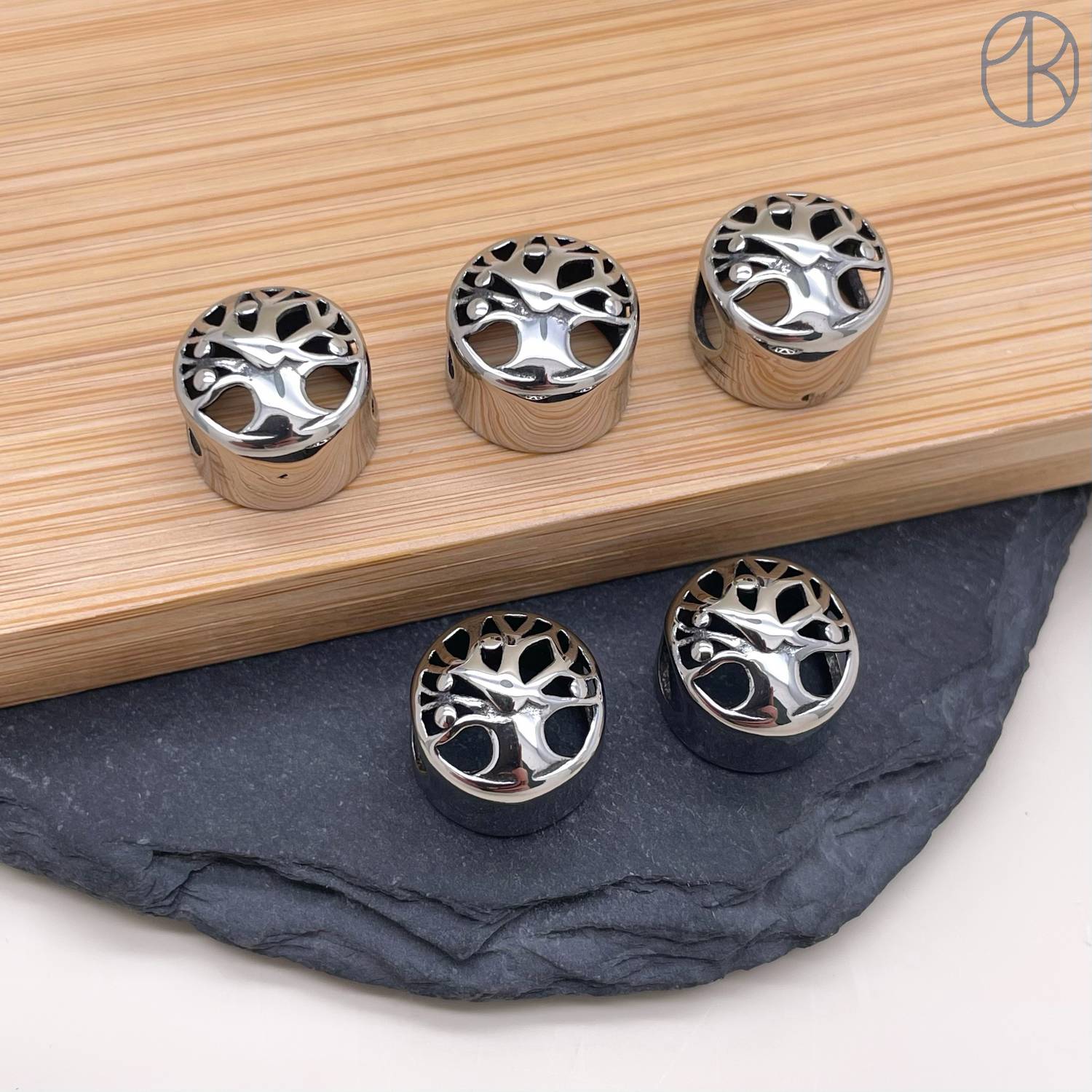Бусина сталь дерево счастья, цвет серебро 12 мм