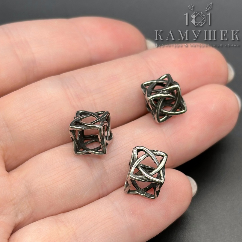 Бусина сталь куб плетеный, цвет серебро 8 мм