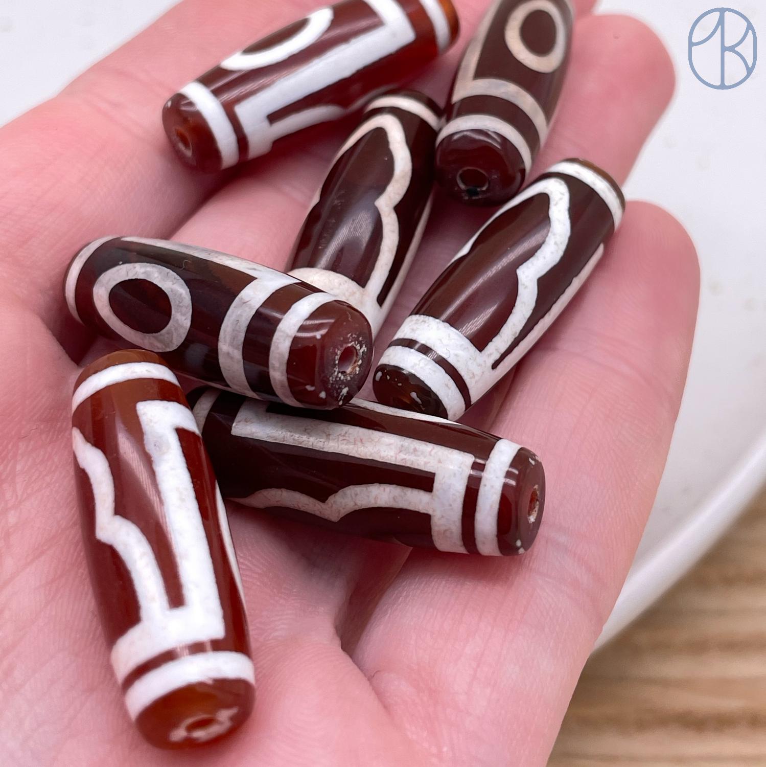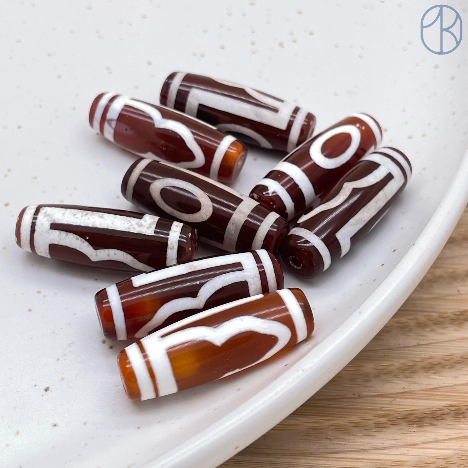 Бусина Дзи 1 глаз и гора коричнево-белый бочонок 30х11 мм