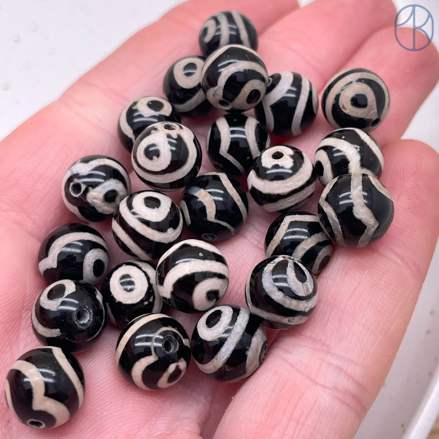 Бусина Дзи 2 глаза черно-белый бочонок уп. 5шт 10 мм