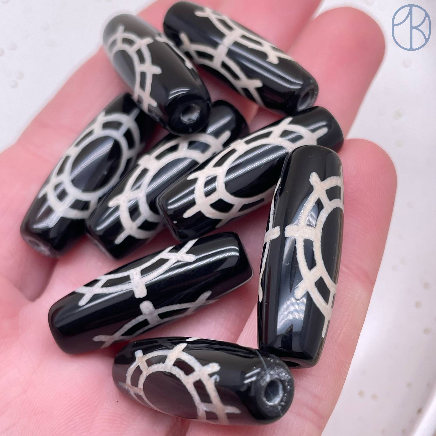 Бусина Дзи Колесо Фортуны черно-белый бочонок 30х11 мм