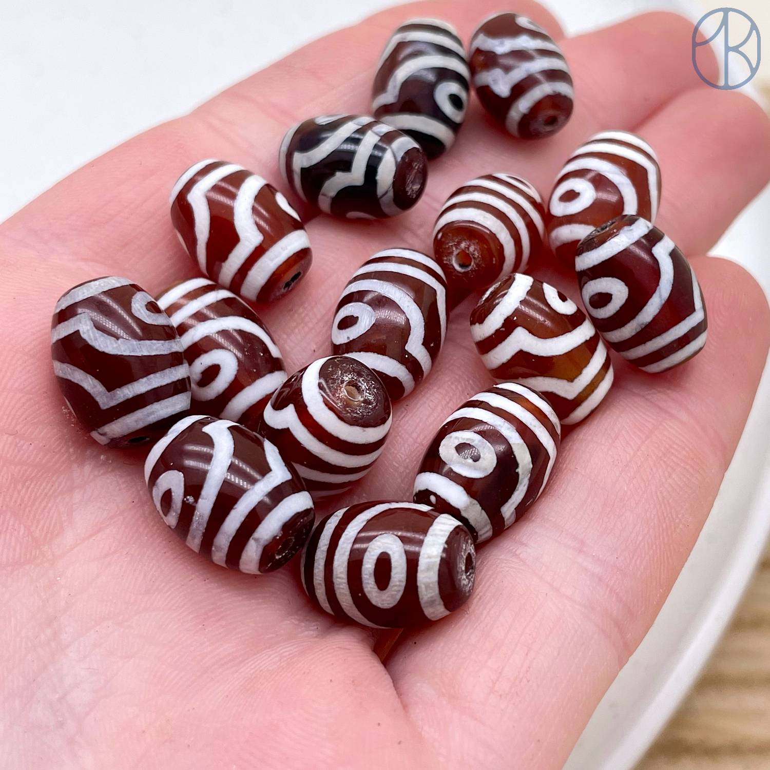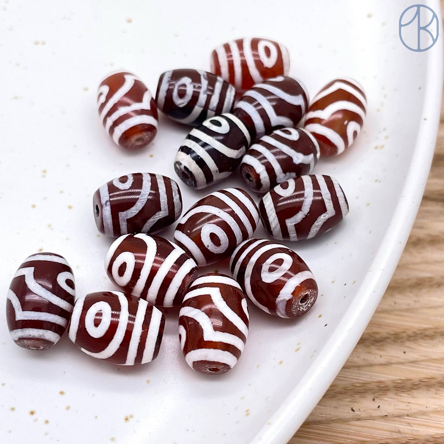 Бусина Дзи 2 глаза коричнево-белый бочонок уп. 5шт 14х10 мм