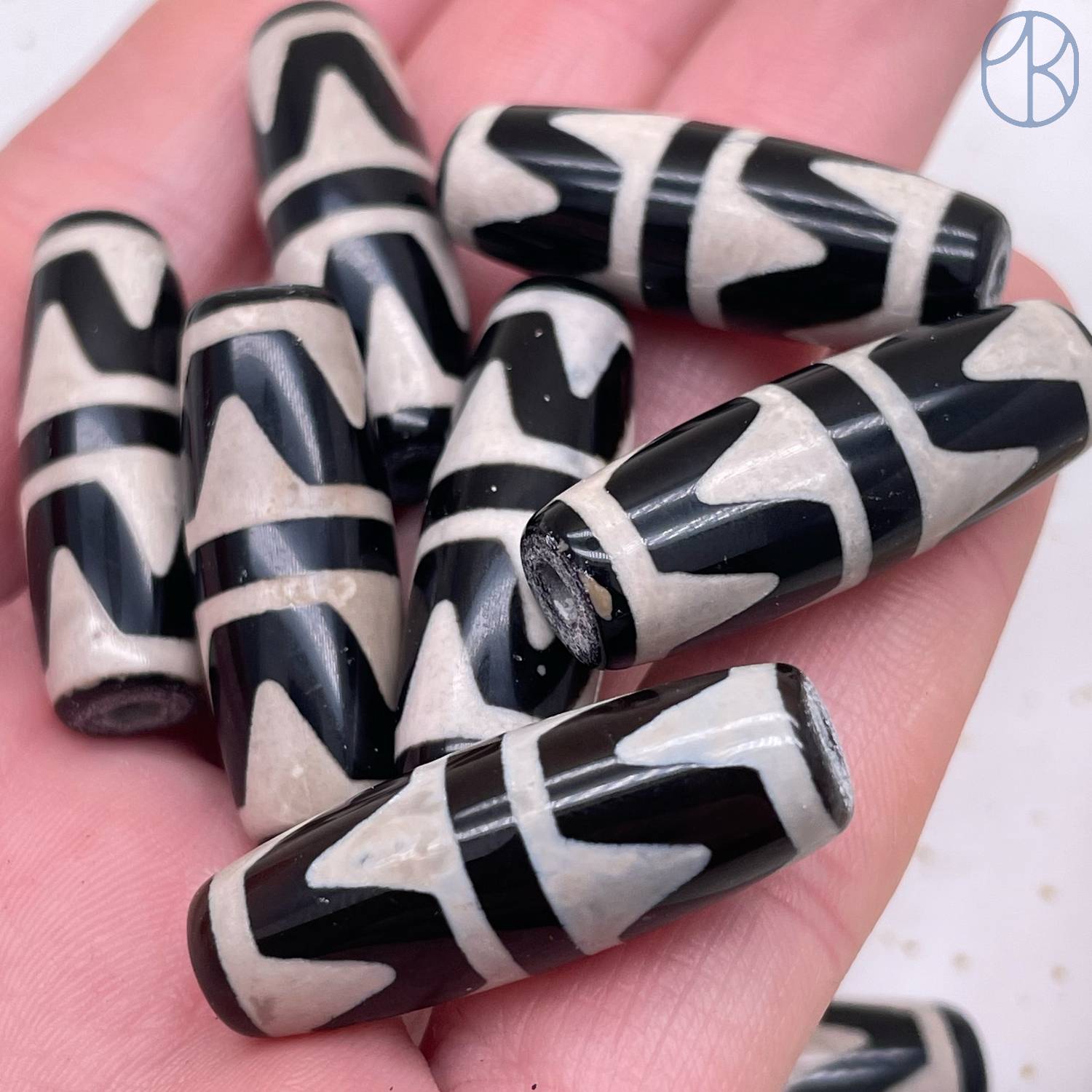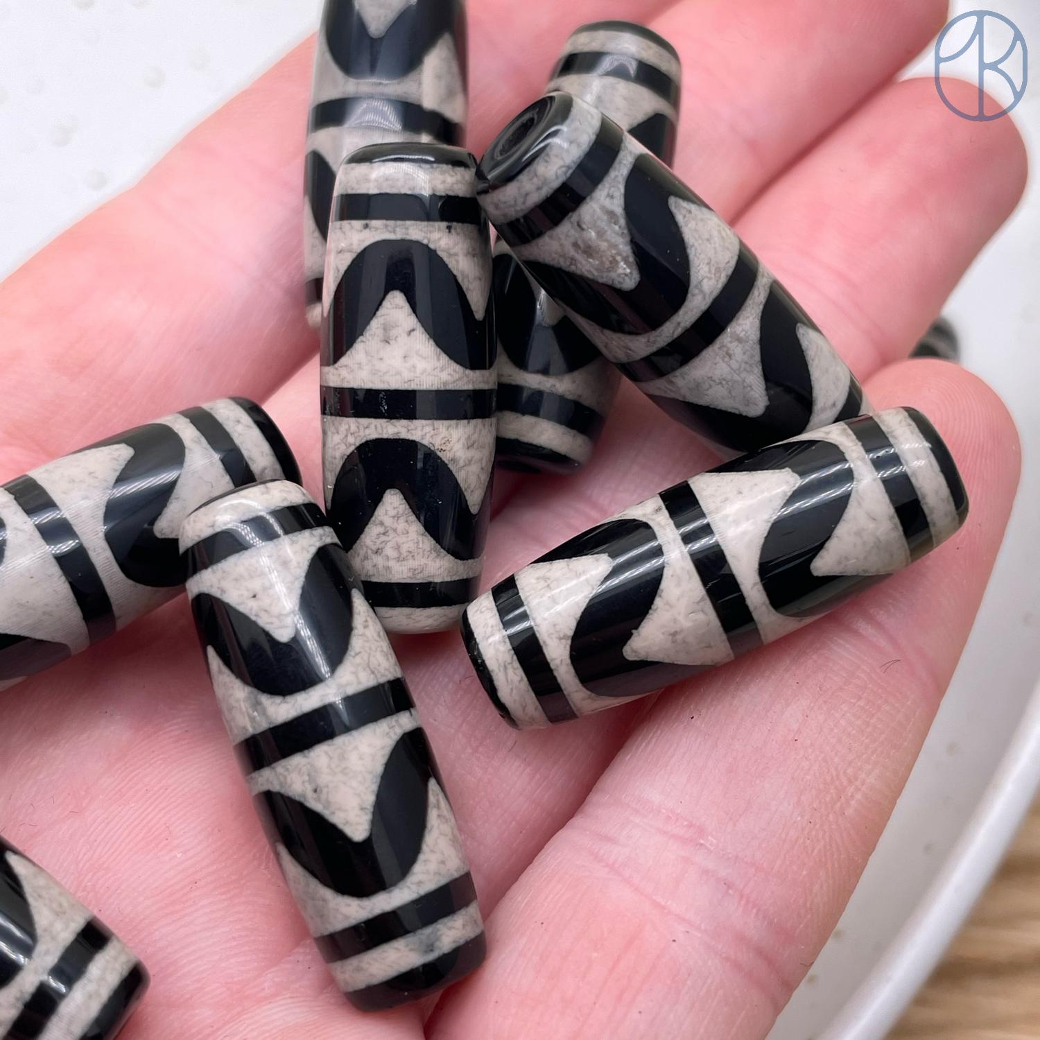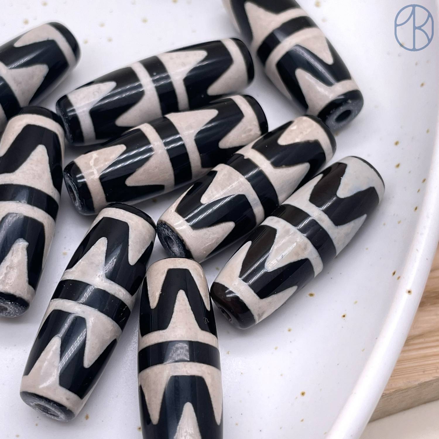 Бусина Дзи 2-й Тигровый Клык черно-белый бочонок 30х11 мм