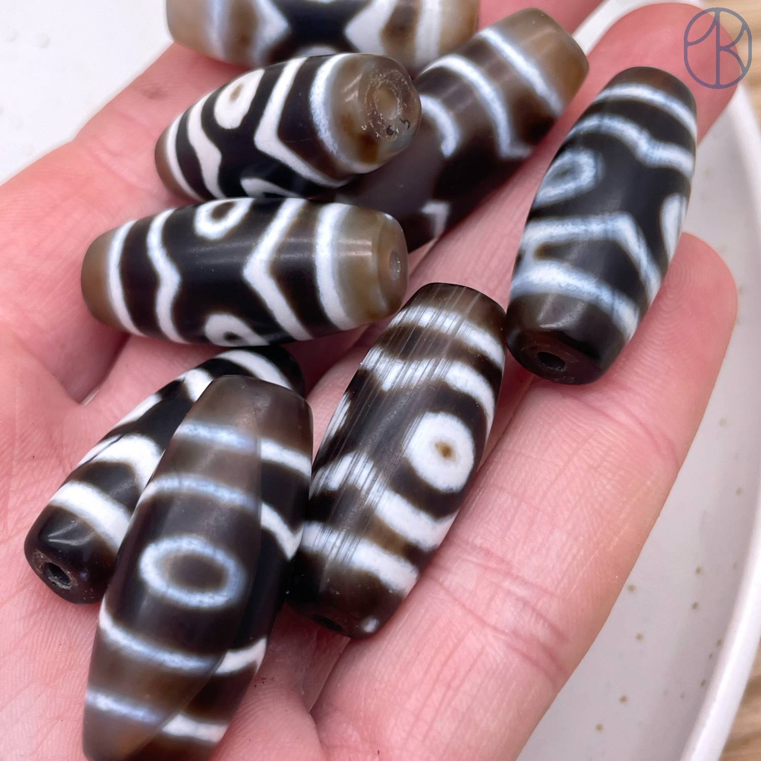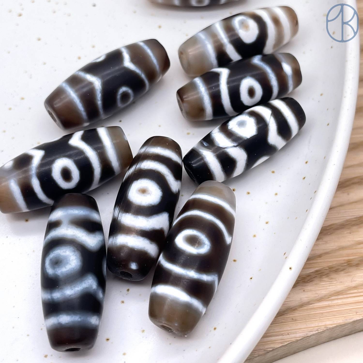 Бусина Дзи 3 глаза бело-серый бочонок 30х11 мм