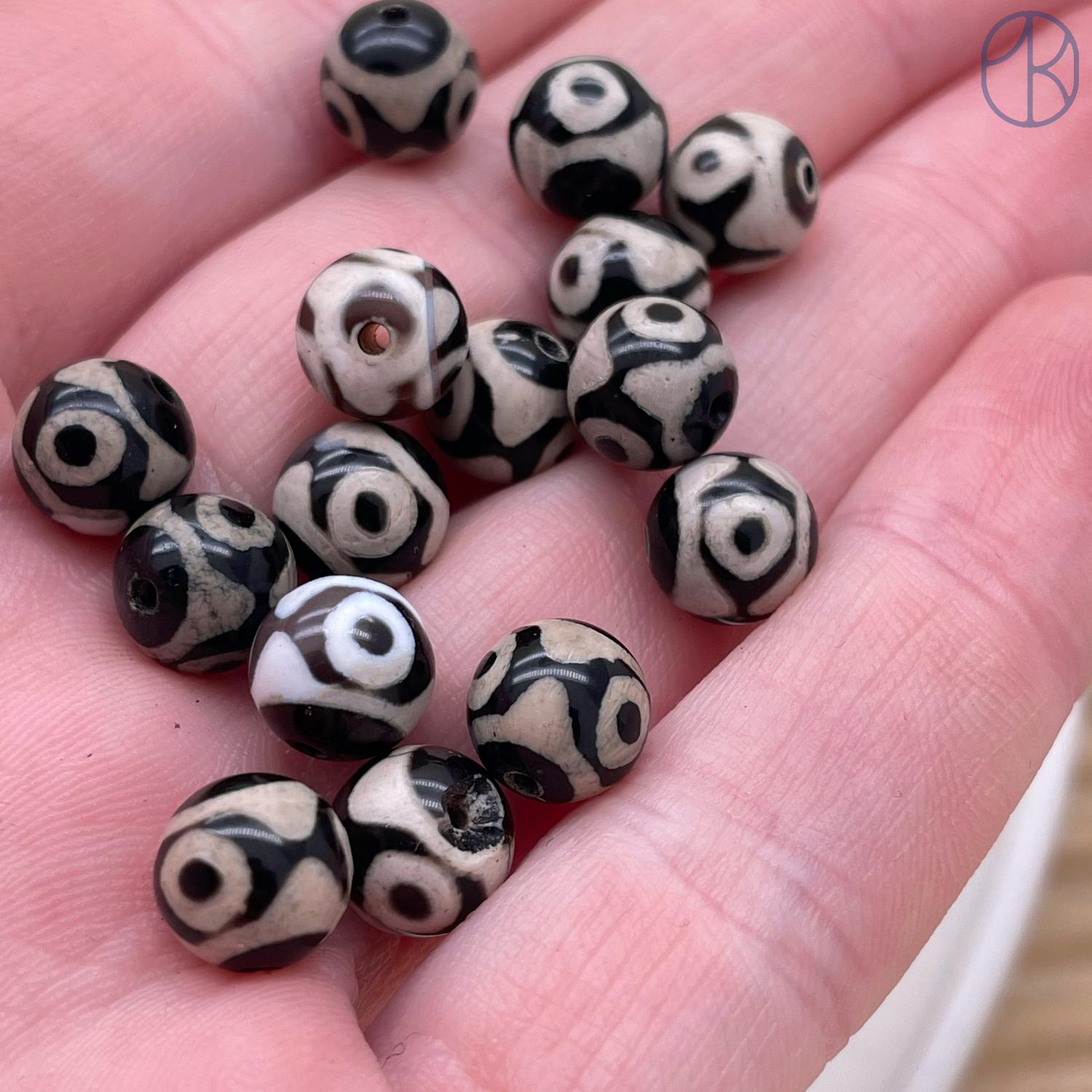 Бусина Дзи 3 глаза черно-белый шар уп.5 шт 8 мм