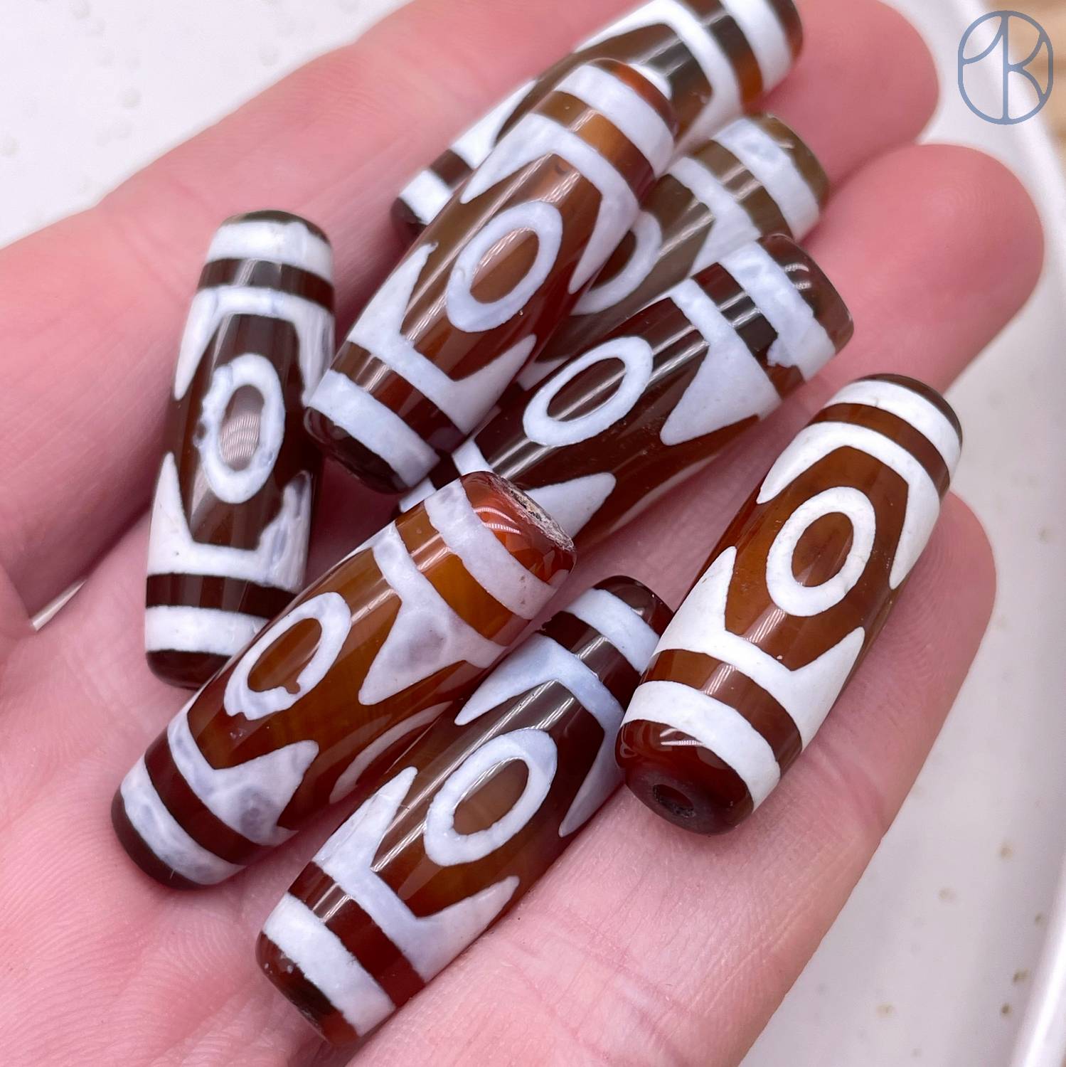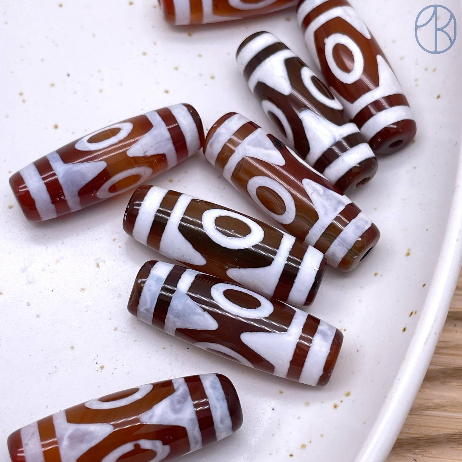 Бусина Дзи 3 глаза коричнево-белый бочонок 30х11 мм