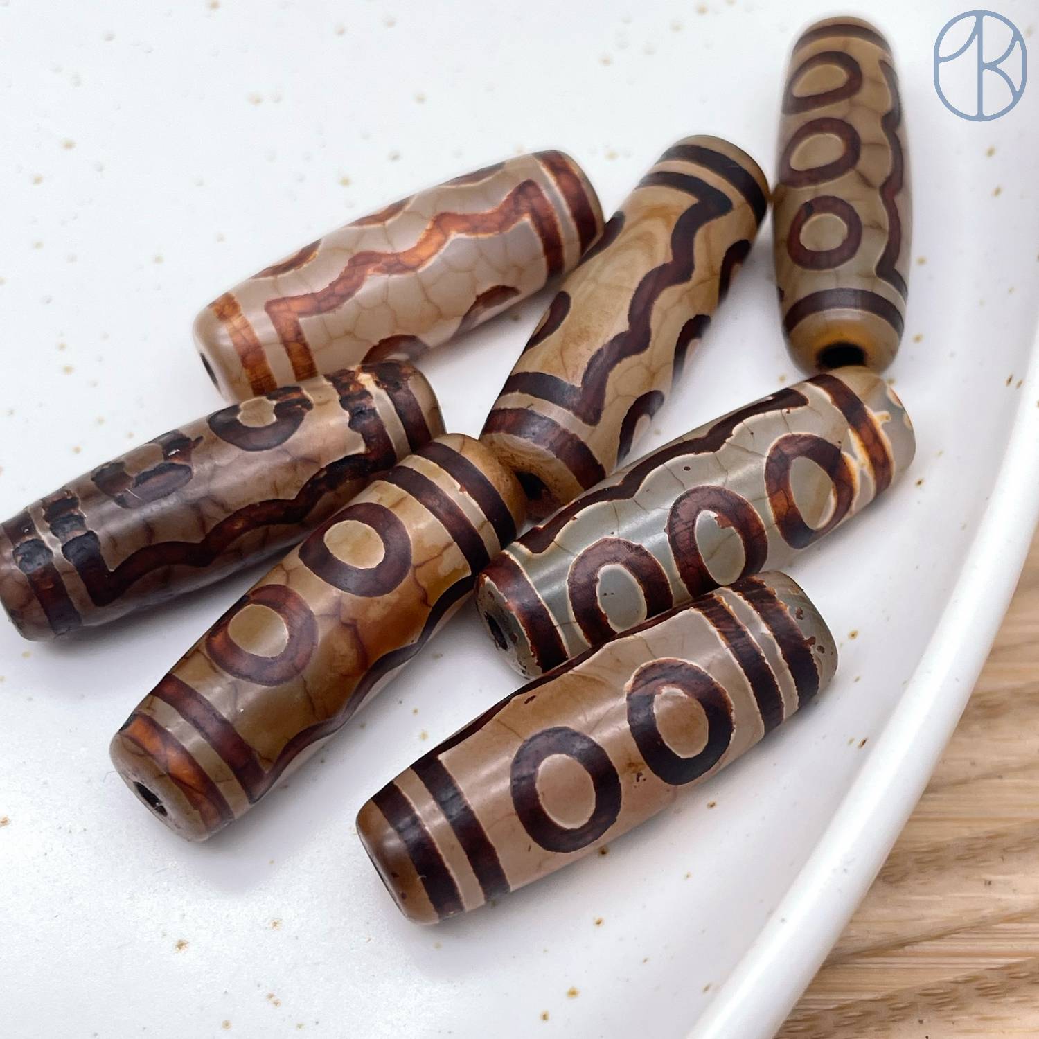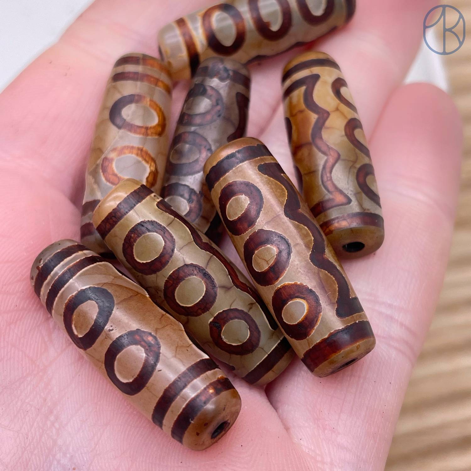 Бусина Дзи 5 глаз серо-коричневый бочонок 30х11 мм