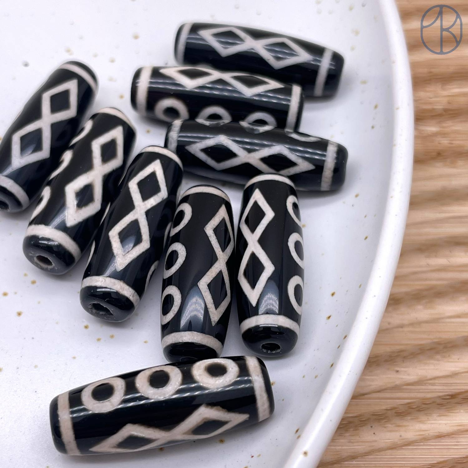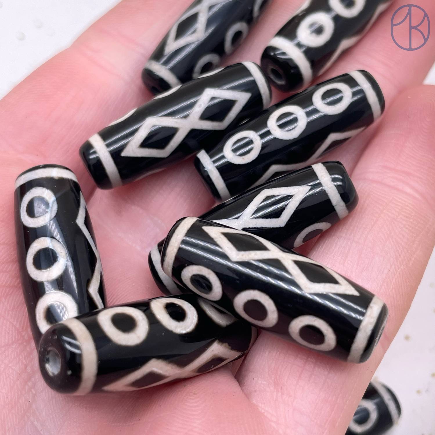 Бусина Дзи 6 глаз черно-белый бочонок №1 30х10 мм