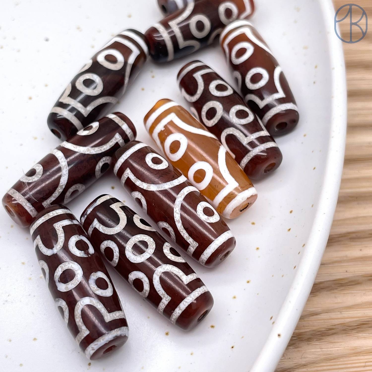 Бусина Дзи 7 глаз серо-коричневый бочонок 30х11 мм