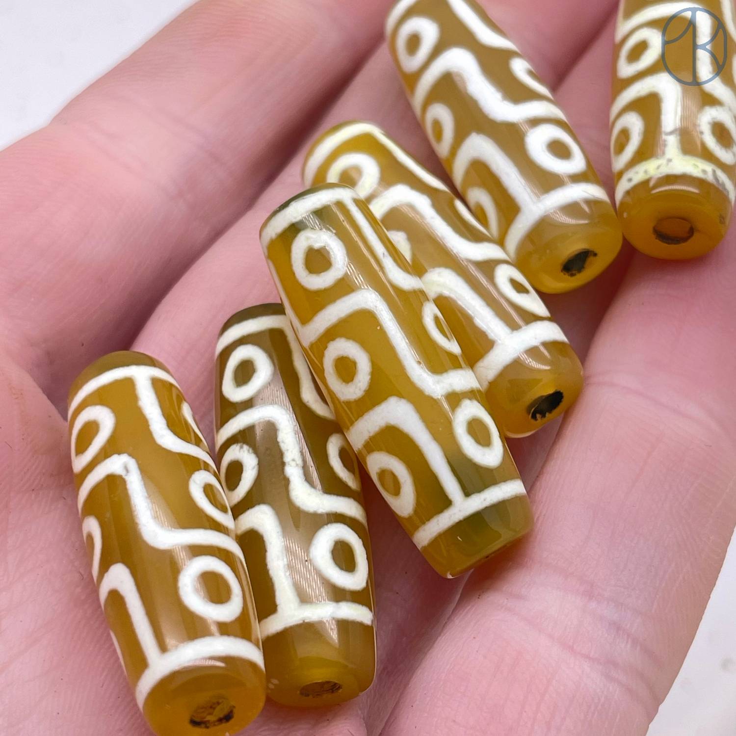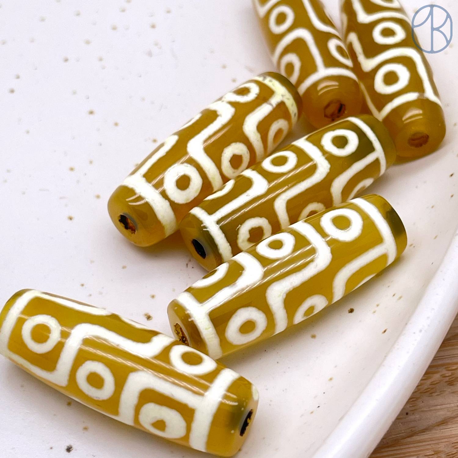 Бусина Дзи 9 глаз желто-белый бочонок 30х11 мм