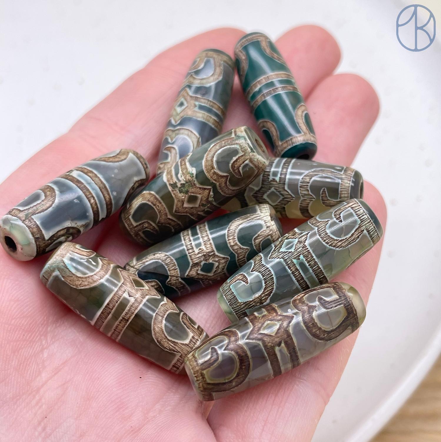 Бусина Дзи Бутон Лотоса серо-зеленый бочонок 30х11 мм