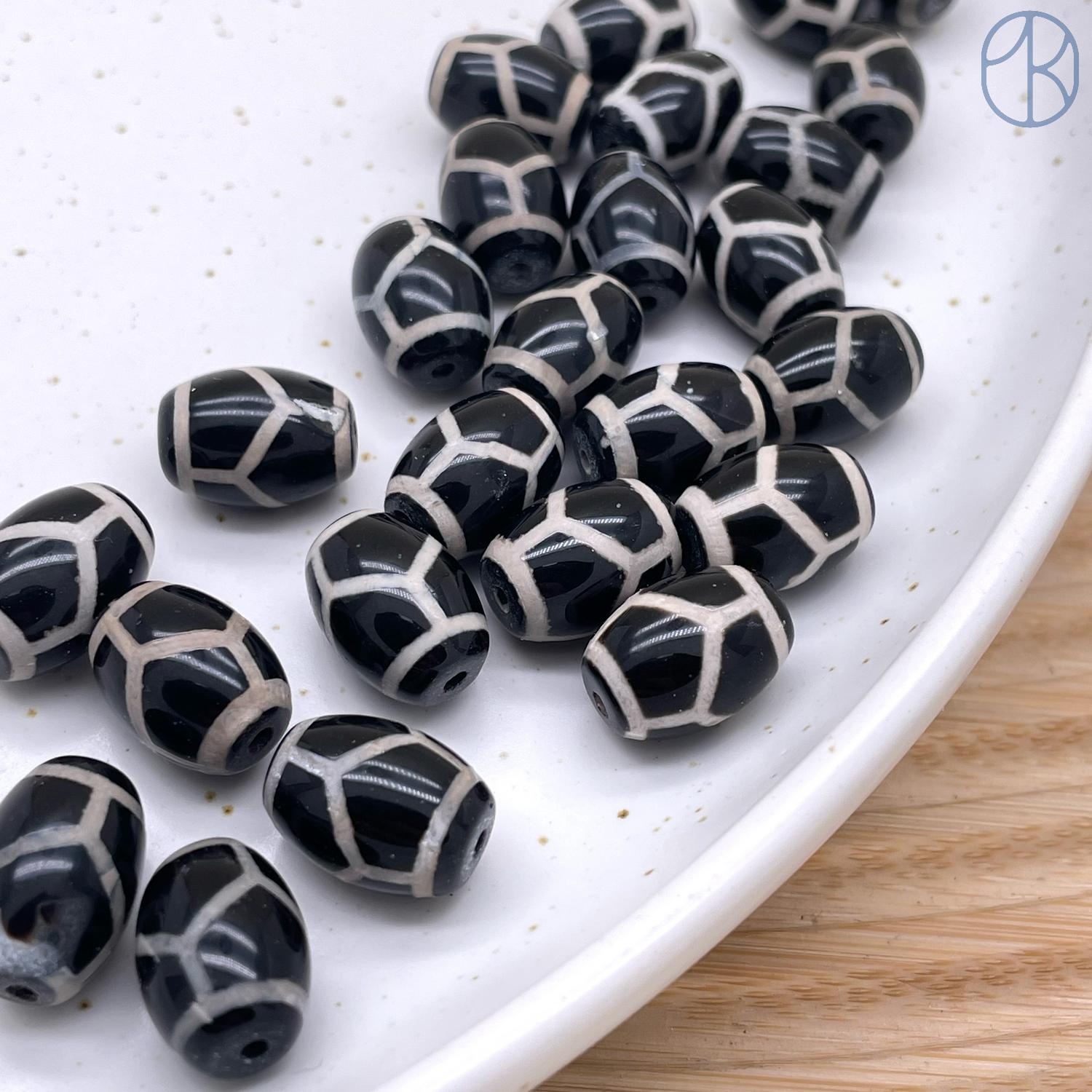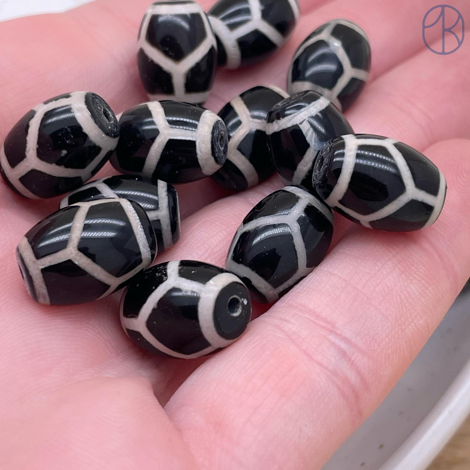 Бусина Дзи Черепаха черно-белый бочонок уп. 5шт 14х10 мм