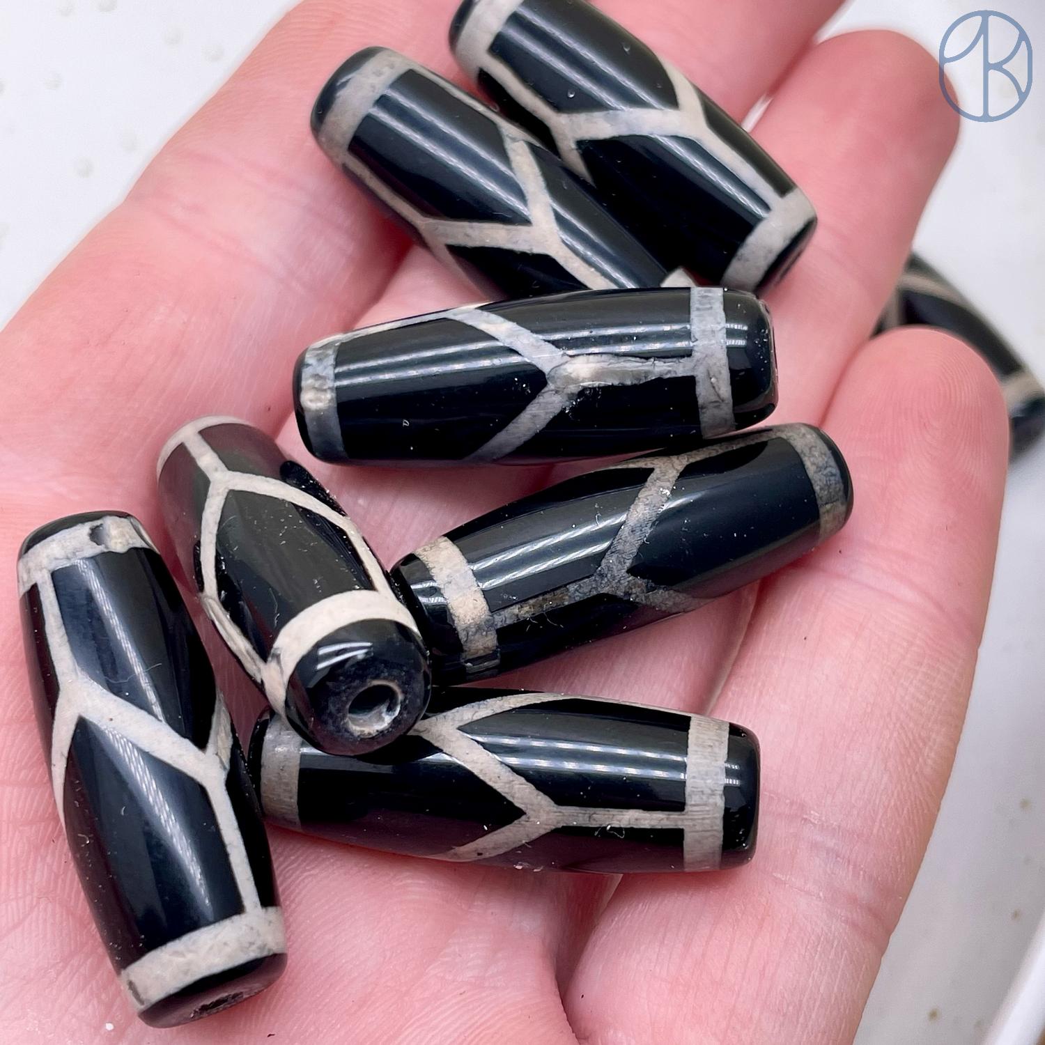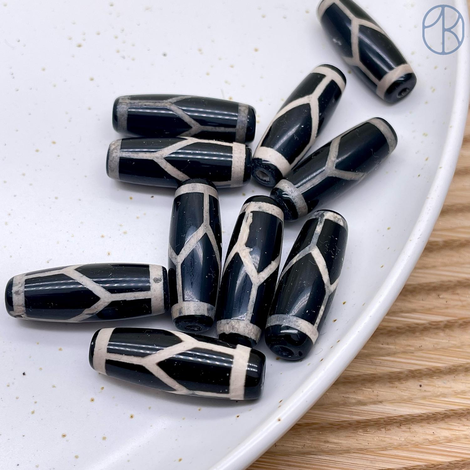 Бусина Дзи черепаха черно-белый бочонок 30х11 мм