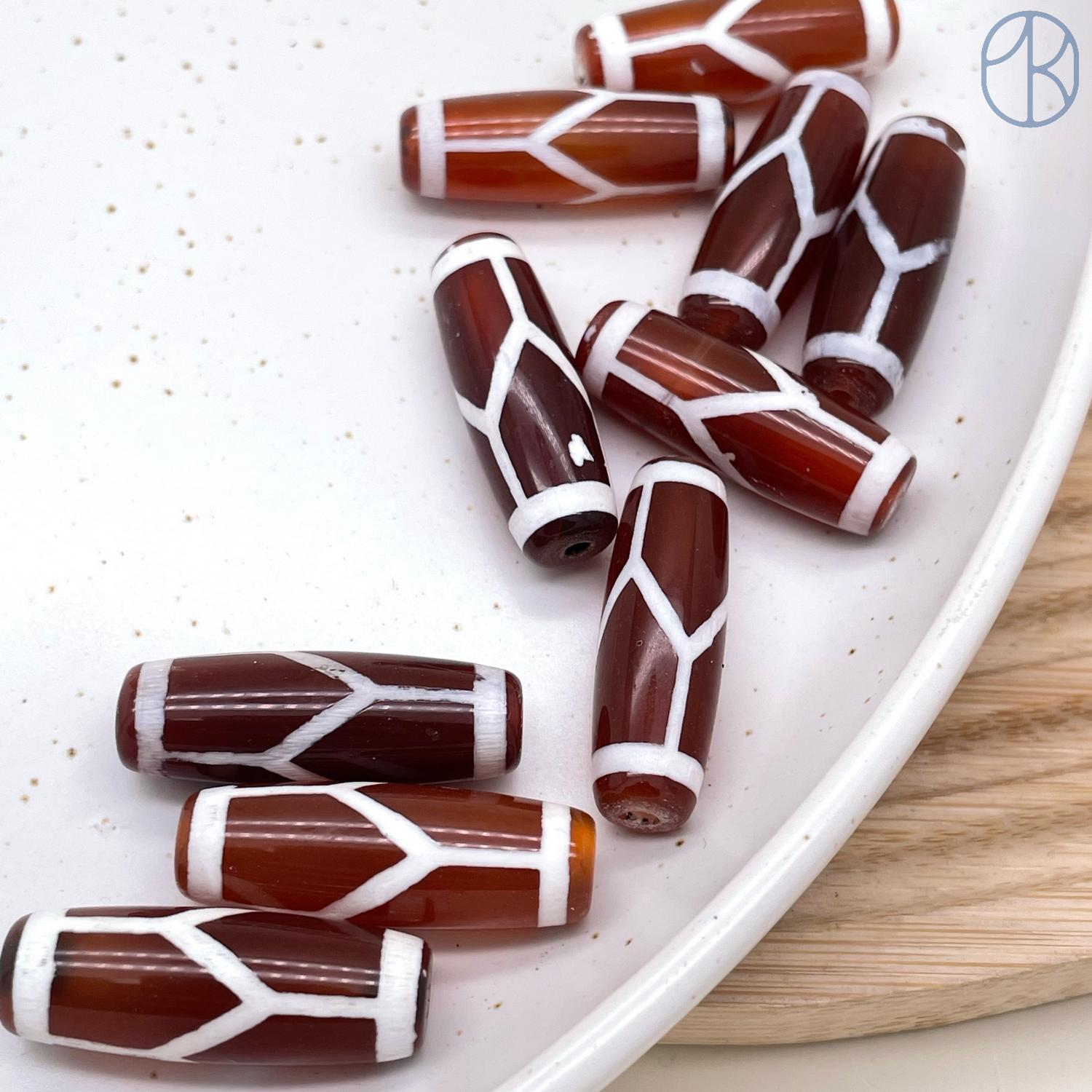 Бусина Дзи черепаха коричнево-белый бочонок 30*11 мм