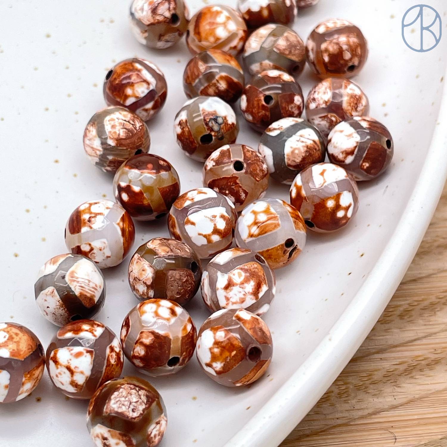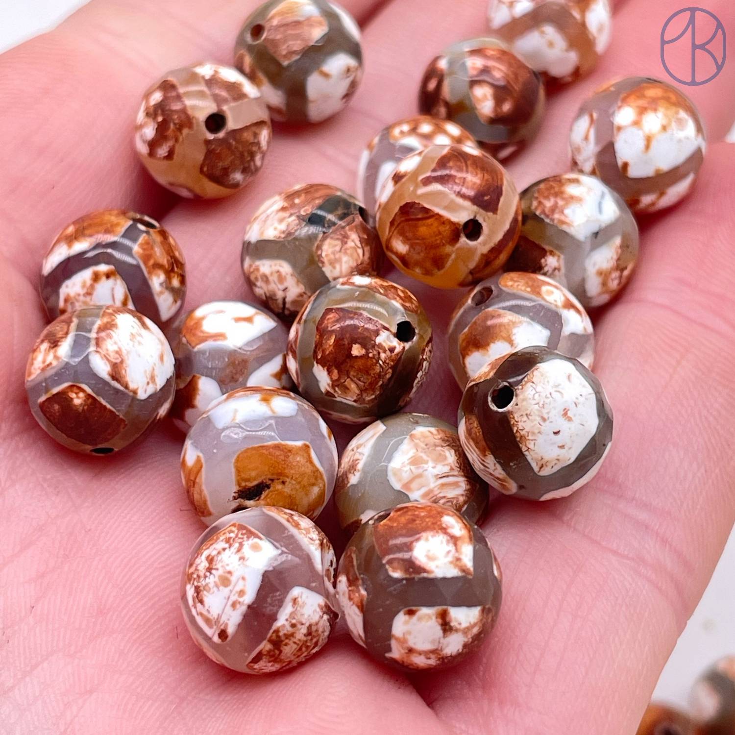 Бусина Дзи Черепаха коричнево-белый шар огранка уп. 5шт 10 мм