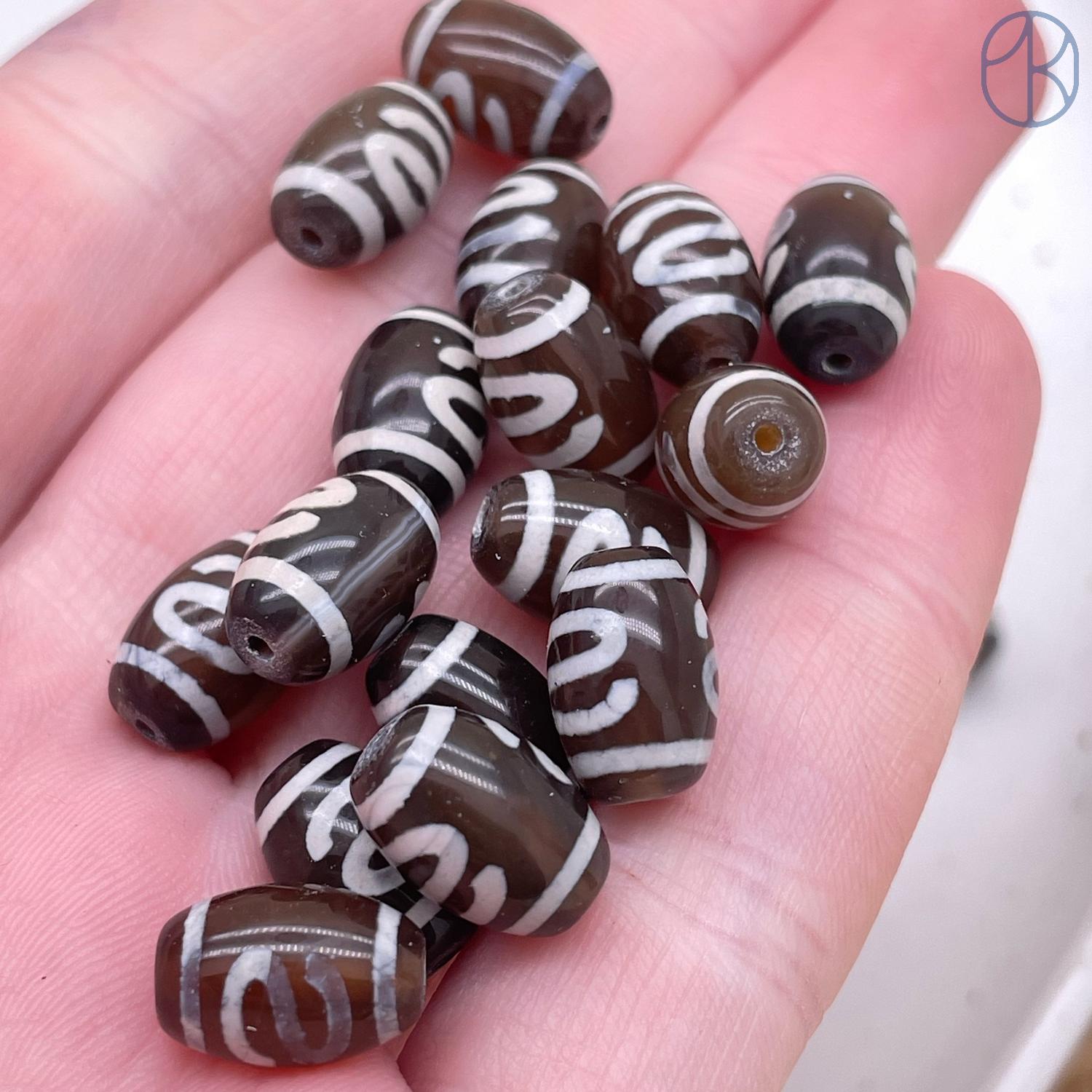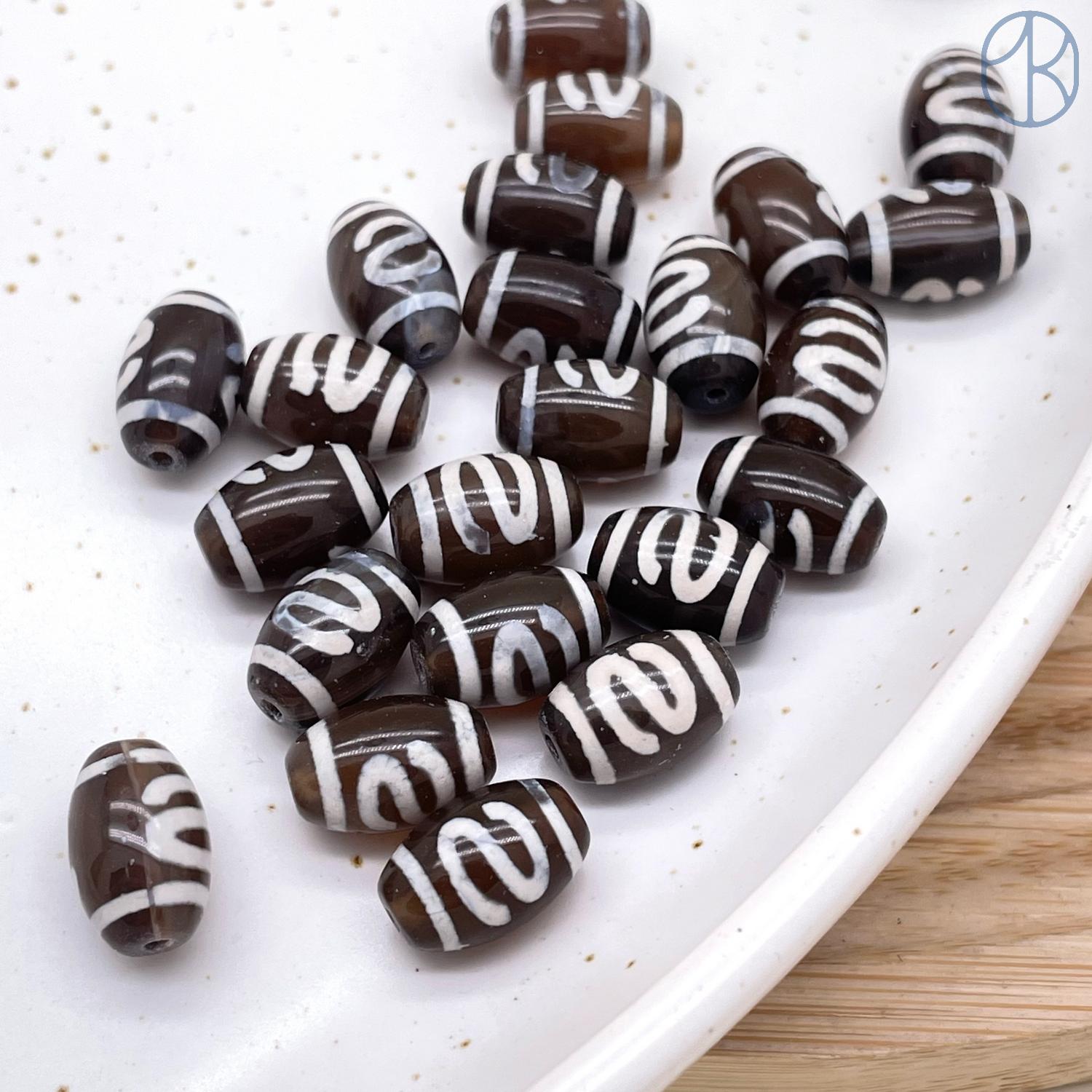 Бусина Дзи Денежный крючок коричневый бочонок уп. 5 шт 12х8 мм