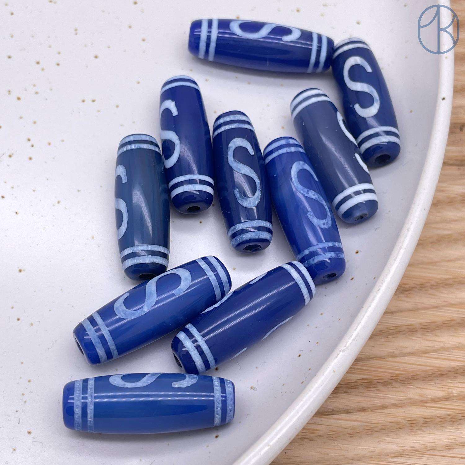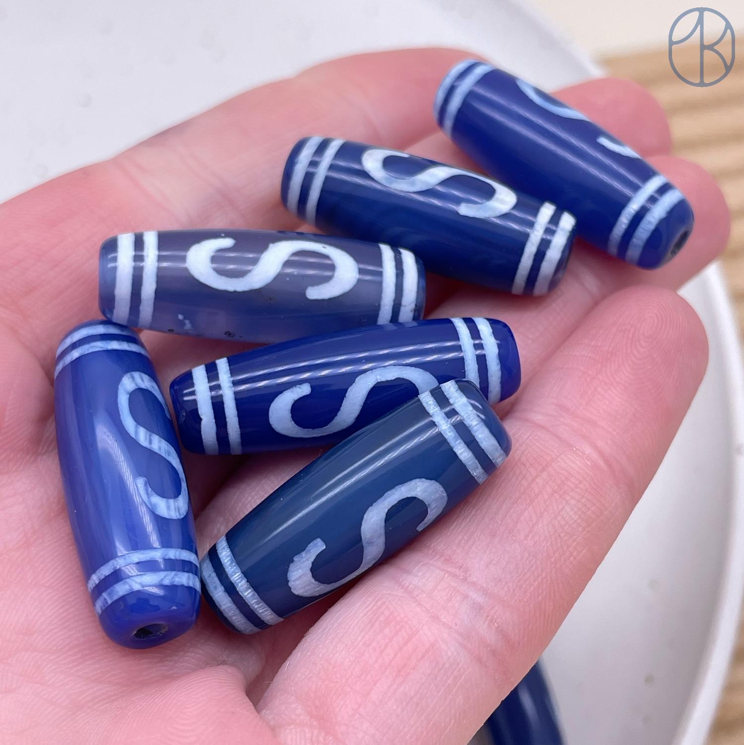 Бусина Дзи Денежный крючок синий бочонок 30*11 мм